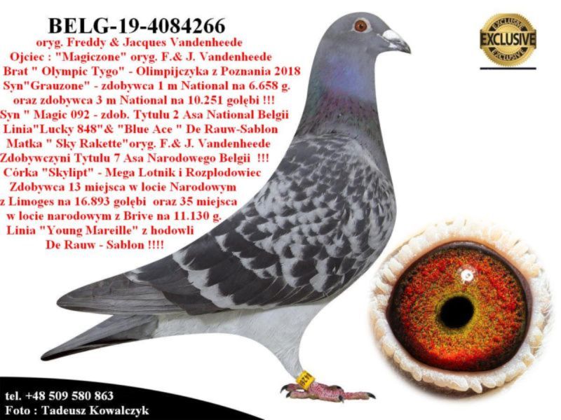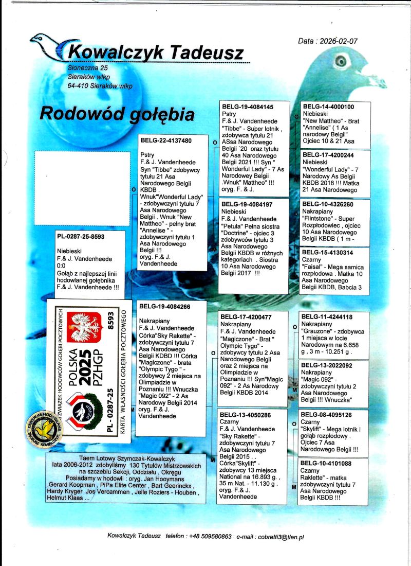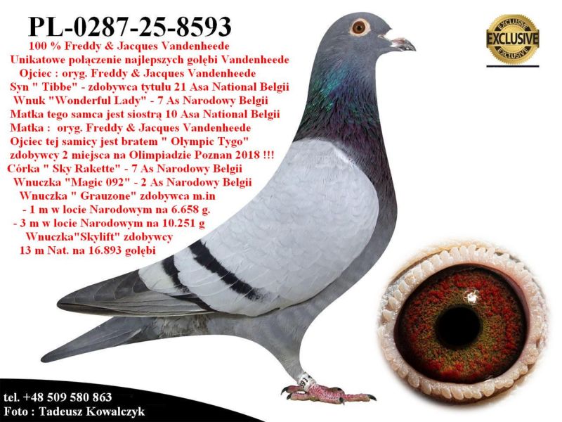 PL-0287-25-8593 Potomek najlepszych gołebi z hodowli F.& J. Vandenheede