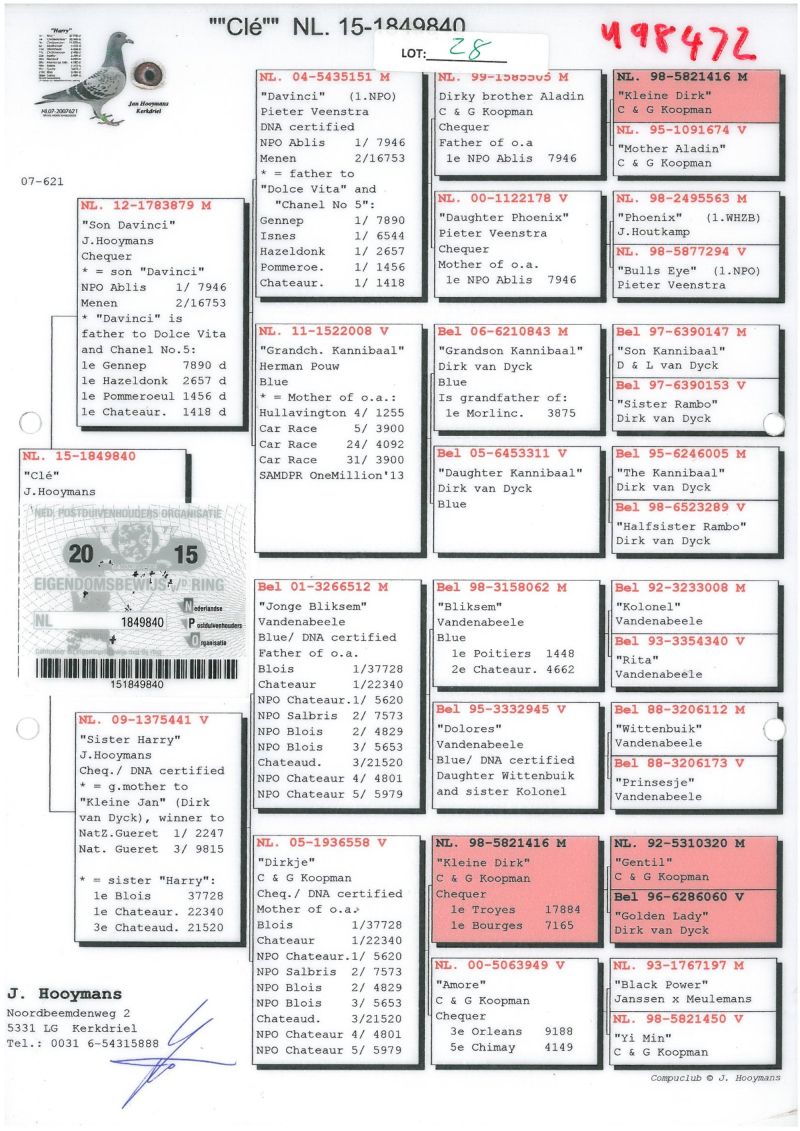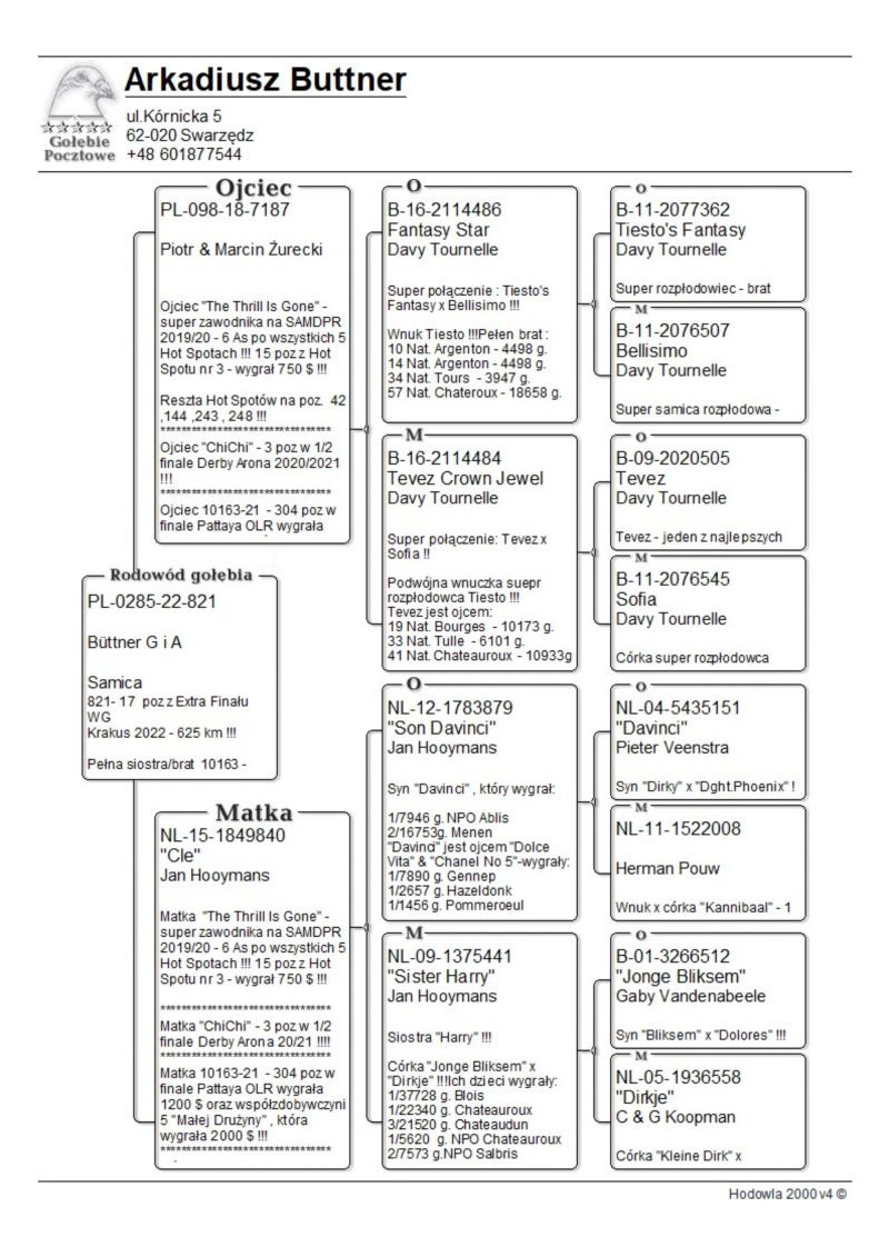 oryg Piotr i Marcin Żureccy - 100 % Davy Tournelle - INBRED SUPER SAMCA TIESTO !! 7187 to jeden z moich najlepszych samców rozpłodowych dedykowanych na WG - OJCIEC 4 SUPER GOŁĘBI LUB JEGO CÓRKA 1872 LUB CÓRKA 821 - KTÓRA BYŁA 17 W EXTRAFINALE WG KRAKUS 2022 ! "The Thrill is Gone"(Hooymans x Tournelle) - 6 As Hot Spotów na ostatniej edycji SAMDPR - była to najwyższa lokata polskiego gołębia w historii imprezy 42 ,144 ,243 , 248 pozycje w Hot Spotach na kilka grubych tysięcy gołębi , Siostra 821-22 była 17 w Extra Finale WG Krakus 2022 , kolejna siostra 3 poz w 1/2 finale Derby Arona 2020/2021 , kolejne rodzeństwo 10163-21 - 304 poz w finale Pattaya OLR wygrała 1200 $ oraz współzdobywczyni 5 "Małej Drużyny" , która wygrała 2000 $ ! Więcej info 601 877 544