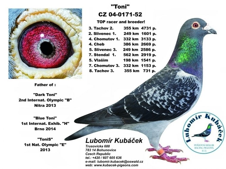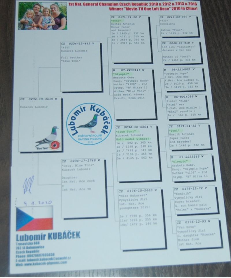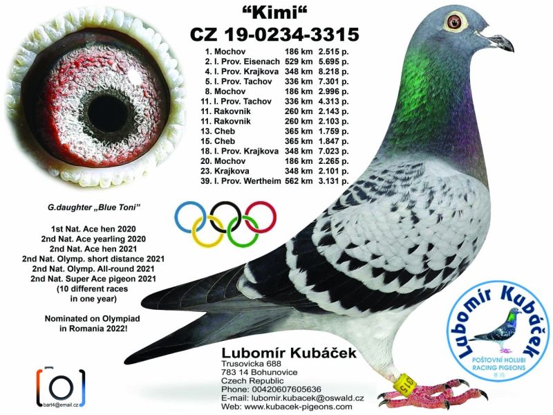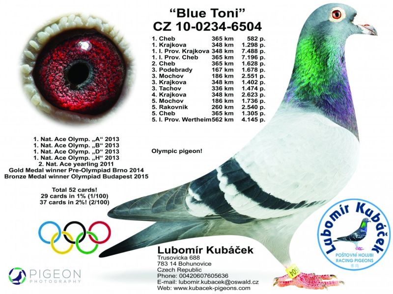 CZ-0234-19-3619 Oryg.Lubomir Kubacek. Wnuk Olimpijczyka "Blue Toni" i Super gołębia rozpłodowego "Toni".Półbrat Olimpijki "Kimi"