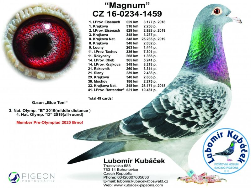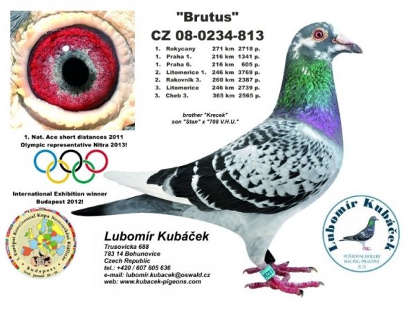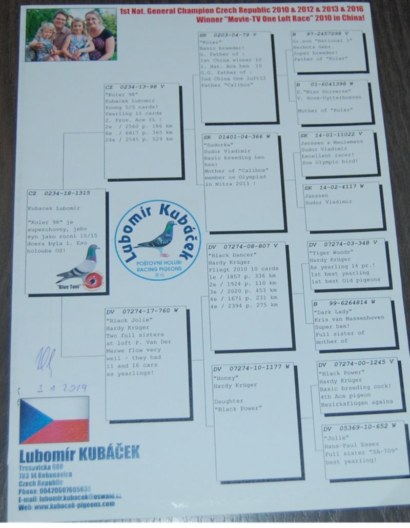 CZ-0234-18-1315 Oryg.Lubomir Kubacek. Córka wybitnego gołębia rozpłodowego "Korel 98" i samicy od Hardy Krugera. Półsiostra Olimpijczyka "Magnum"