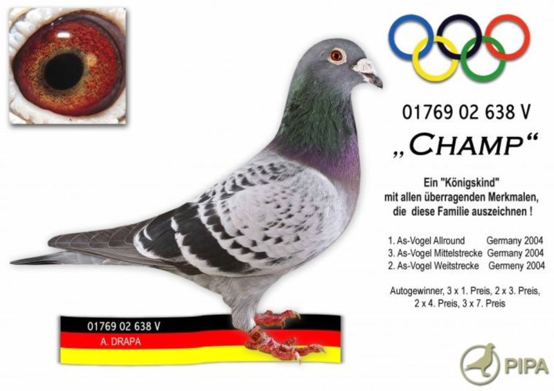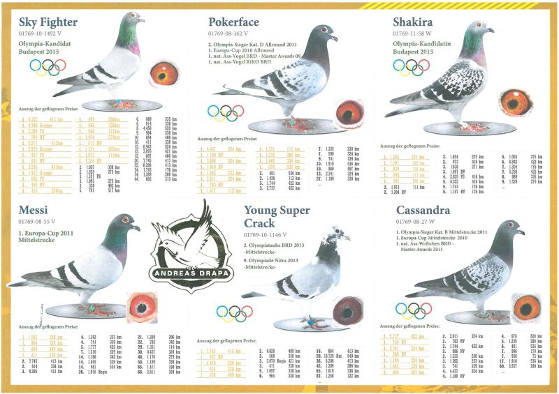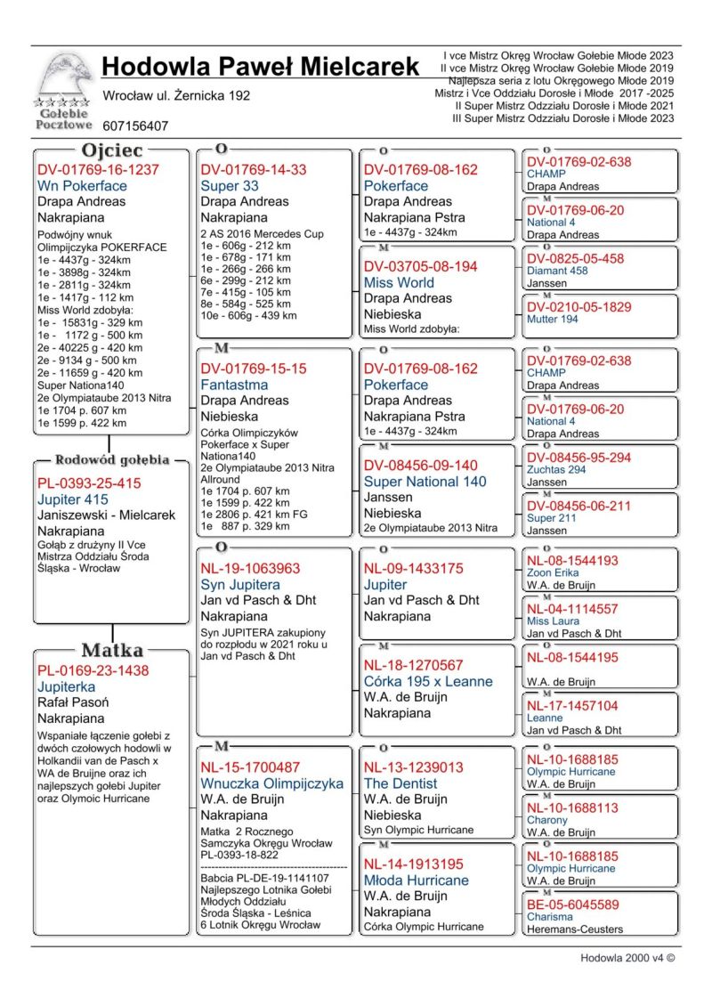 Ładny samczyk Syn Podwójnego wnuka Olimpijczyka Pokerface Andreasa Drapy x wnuczka słynnego Jupitera od van de Pascha + wspaniałe gołębie od WA de Bruijna z rodziny Olimpic Hurricane. W tym gołębiu jest wiele mistrzowskiej krwi.