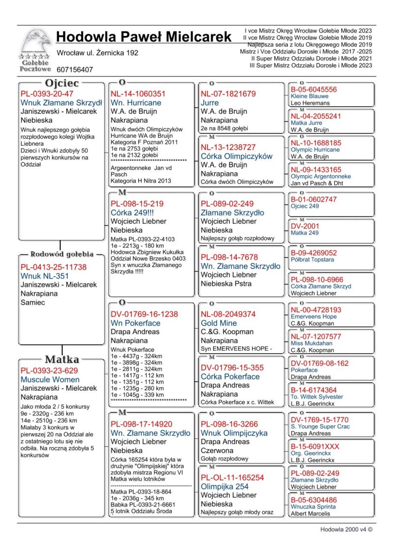 Gołąb z hodowli zmarłego hodowcy Zenona Janiszewskiego. Samczyk wywodzi się z najlepszych gołębi kolegi Wojtka Liebnera Złamane Skrzydło którego dzieci i wnuki wylatały ponad 50 pierwszych konkursów na Oddział, Matka 629 była super zapowiadającą się lotniczką jako młoda zdobyła dwa bardzo szybkie konkursy na Oddział 9 i 14 miałaby trzeci w pierwszej 20 na Oddział ale niestety nie odbiła się na antenie. Jako roczna miała 5 dobrych konkursów, później nie była lotowana . Gołąb szczepiony na paramixowirozę, ospę i salmonellozę! Odbiór gołębi: Najchętniej osobiście (Wrocław) Możliwa wysyłka prywatnym kurierem koszt pokrywa kupujący około 150 zł Szczegóły proponowanych gołębi znajdziecie w rodowodzie oraz pod numerem 607156407 o telefony proszę po godzinie 16ej.