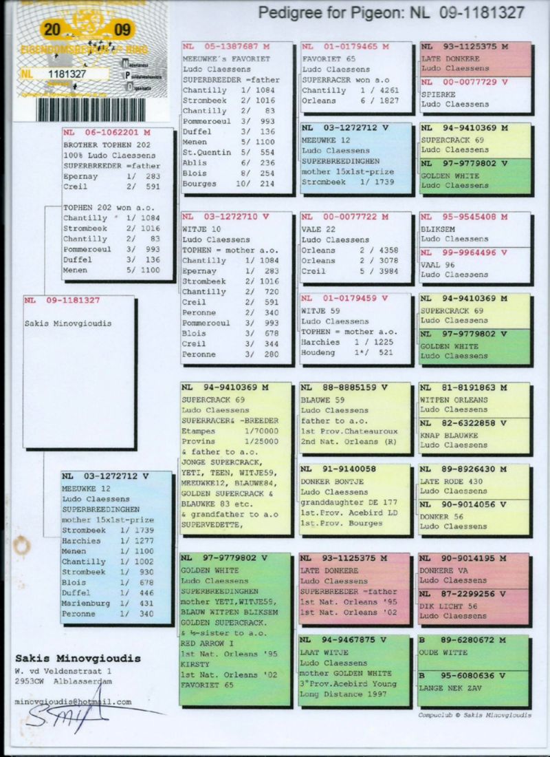 "Felle 040" dziadek m.in 8755 , który dla Kol . Krzyśka Kusia wylatał 4 wynik w Polsce w kat olimpijskie E i był gołębiem rezerwowym na olimpiadę. Jest też pradziadkiem PL-0122-22-2219 - w 2 sezony na 21 wkładań 20 konkursów - kat A coeff 9,08 a z dwóch lat do wystaw kat A-74,86 , kat B-65,94 a kat D-72,20
