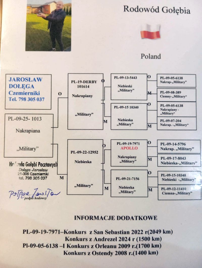 Witam serdecznie, gołąb z hodowli Jarosława Dołęgi. Jest to gołąb młody z 2025 roku. Więcej informacji w rodowodzie i pod nr tel.798305037. * Możliwość wysyłki na terenie Polski.