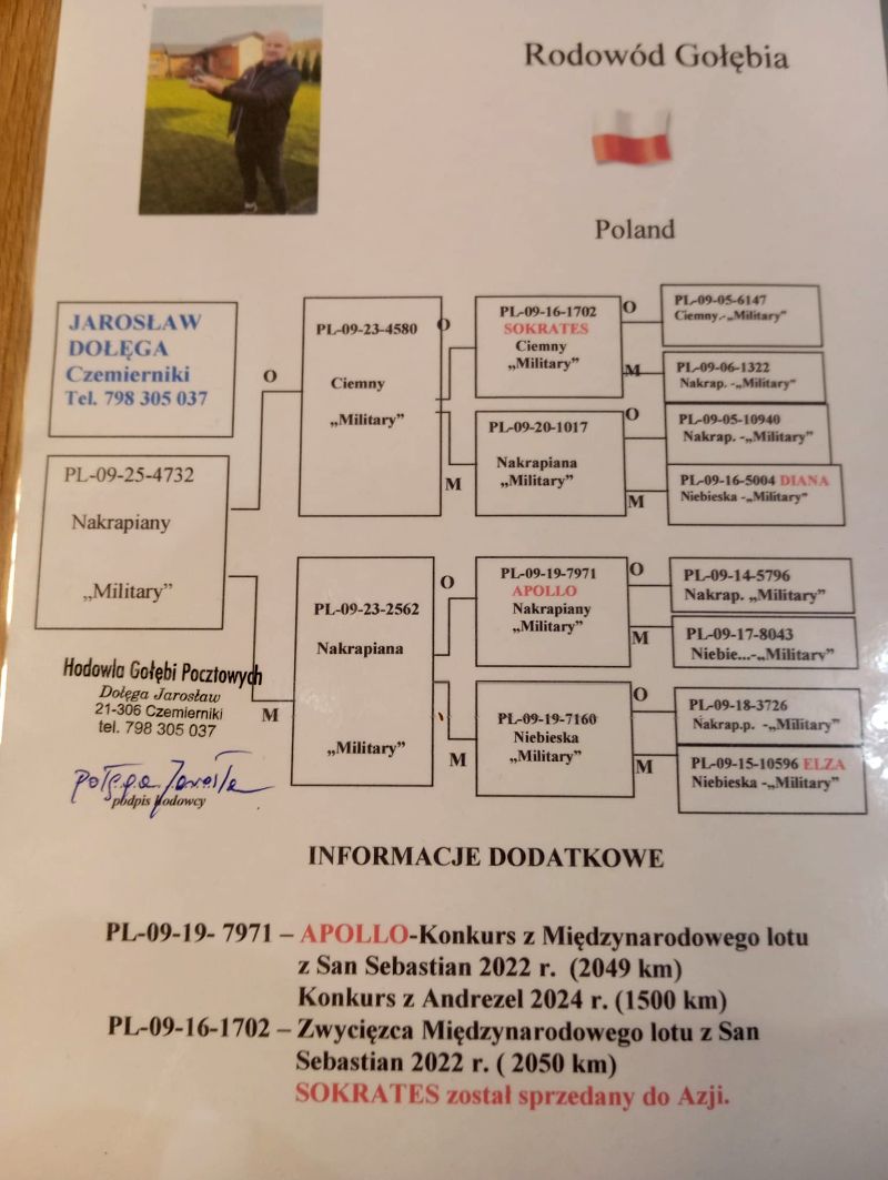 Witam serdecznie, gołąb z hodowli Jarosława Dołęgi. Jest to gołąb młody z 2025 roku. Więcej informacji w rodowodzie i pod nr tel.798305037. * Możliwość wysyłki na terenie Polski.