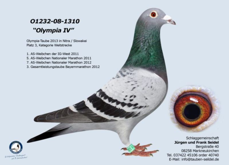 Havenith , gołąb dalekodystansowy. Wnuk (wnuczka)Olimpijki Bruksela 2017 kat.E daleki dystans DV 01232-11-264, m.in. zdobyła 4x 1 konk. na odległości nad 800 km.Rodzina Seidel posiada siedmiu Olimpijczyków w kategorii daleki dystans, m.in. DV 01232-15-306 Olimpijka z Oradea 2022, pierwszy gołąb niemiec i 17 świata. Gołąbki zaszczepione msv i odrobaczone. Transport gołębi kurierem po wcześniejszym uzgodnieniu,odbiór osobisty.