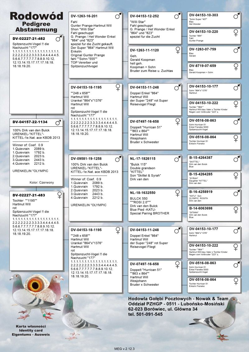 Oryginalny gołąb z hodowli Nowak & Team, szczegóły pochodzenia, rodowód poniżej. Transport gołębi prywatnym transportem.