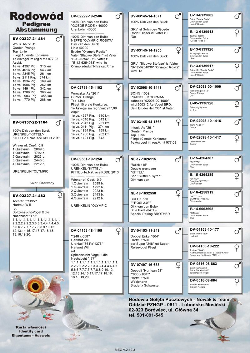 Oryginalny gołąb z hodowli Nowak & Team, szczegóły pochodzenia, rodowód poniżej. Transport gołębi prywatnym transportem.