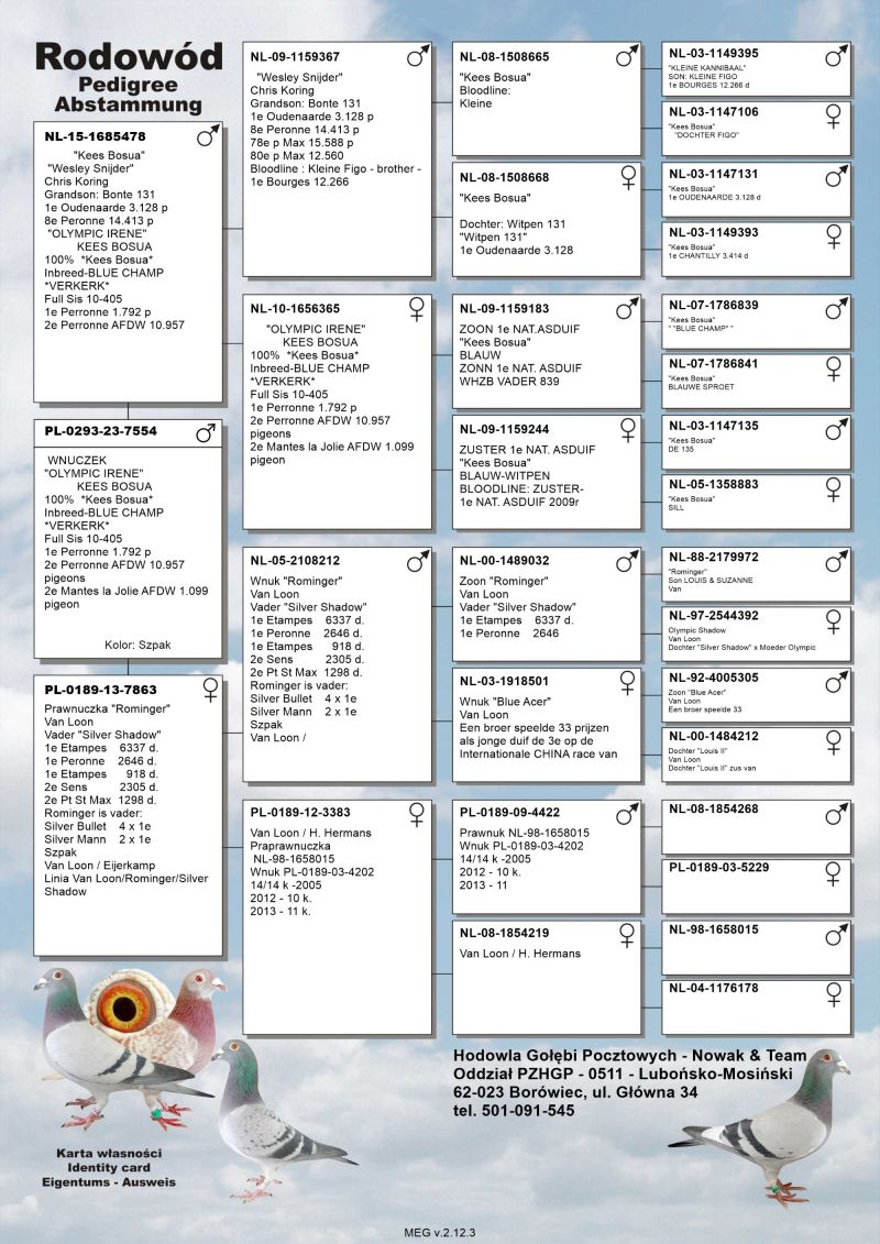 Oryginalny gołąb z hodowli Nowak & Team, szczegóły pochodzenia, rodowód poniżej. Transport gołębi prywatnym transportem.