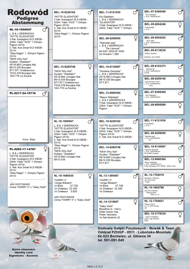 PL-0217-24-10716 Super Inbred „Witte Gladiator“ L.B.&J.Geerinckx – ojciec x córka