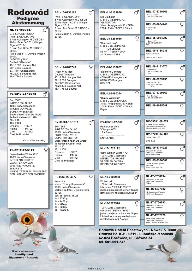 PL-0217-24-10778 Inbred „De Grote“ x „Young Supercrack“ Ludo Claessens x „Witte Gladiator“ L.B.&J.Geerinckx