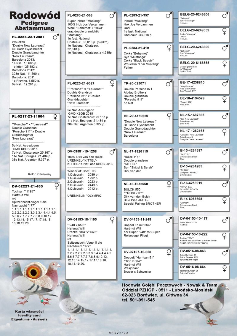 Oryginalny gołąb z hodowli Nowak & Team, szczegóły pochodzenia, rodowód poniżej. Transport gołębi prywatnym transportem.