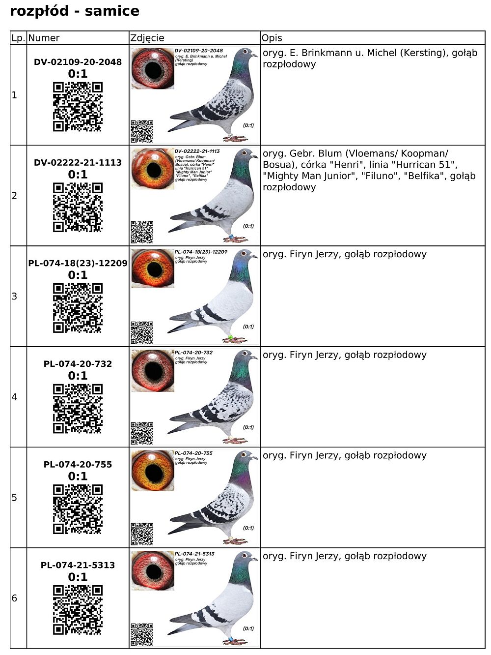 oryg. Firyn Jerzy, gołąb lotowy Oferowany gołąb pochodzi z hodowli zmarłego ś.p. Jerzego Firyna. Wszystkie oferowane gołębie z tej hodowli są gołębiami lotowymi. Hodowca lotował wiele lat w Oddziale 074 Starogard Gd. - Kociewie. Szczegóły pochodzenia w rodowodzie. Więcej informacji o gołębiach i transporcie pod nr tel.: 501 186 973.