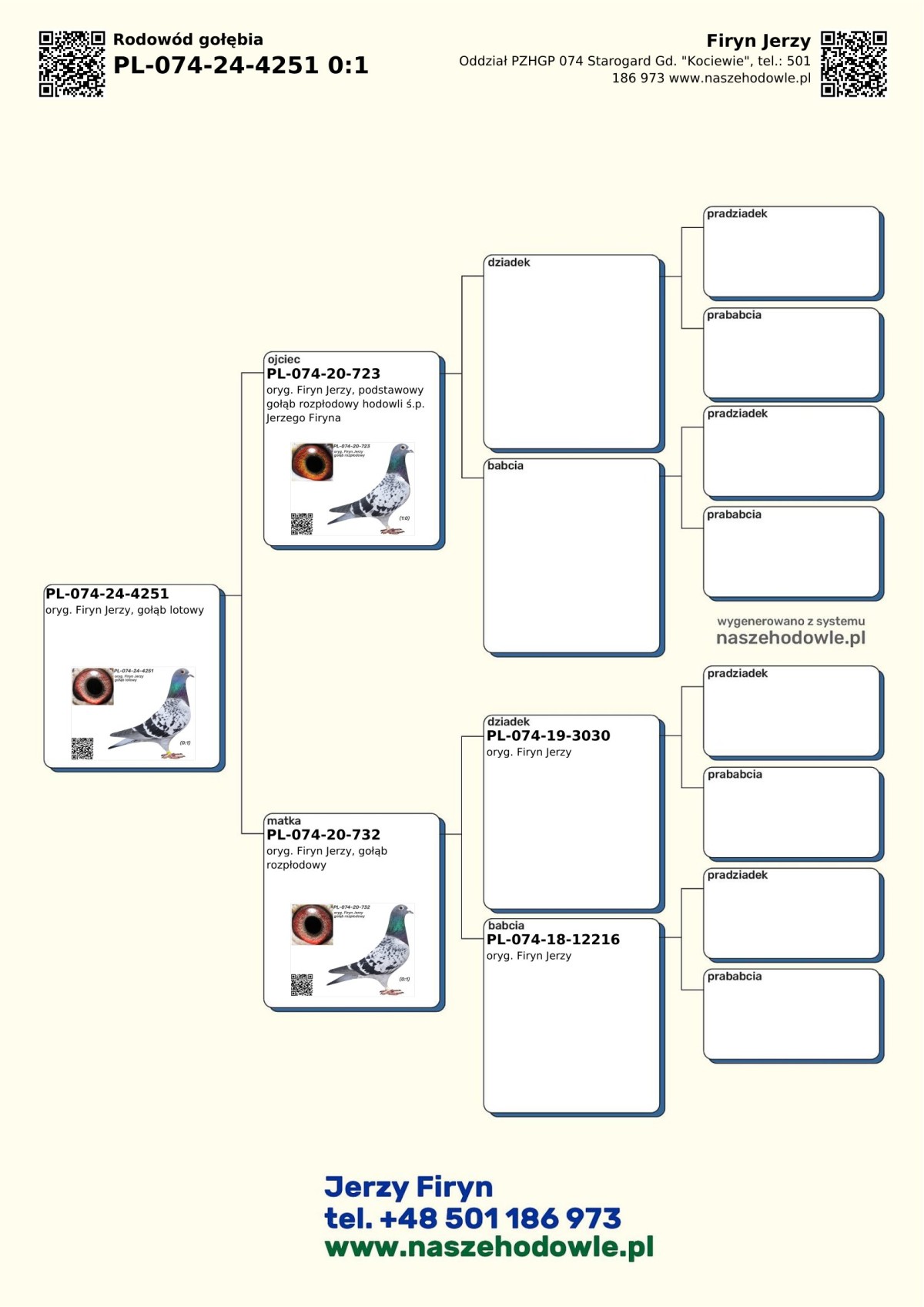 PL-074-24-4251 - oryg. Firyn Jerzy, gołąb lotowy