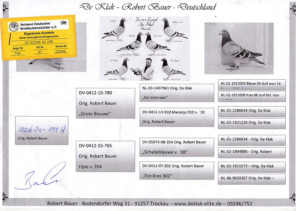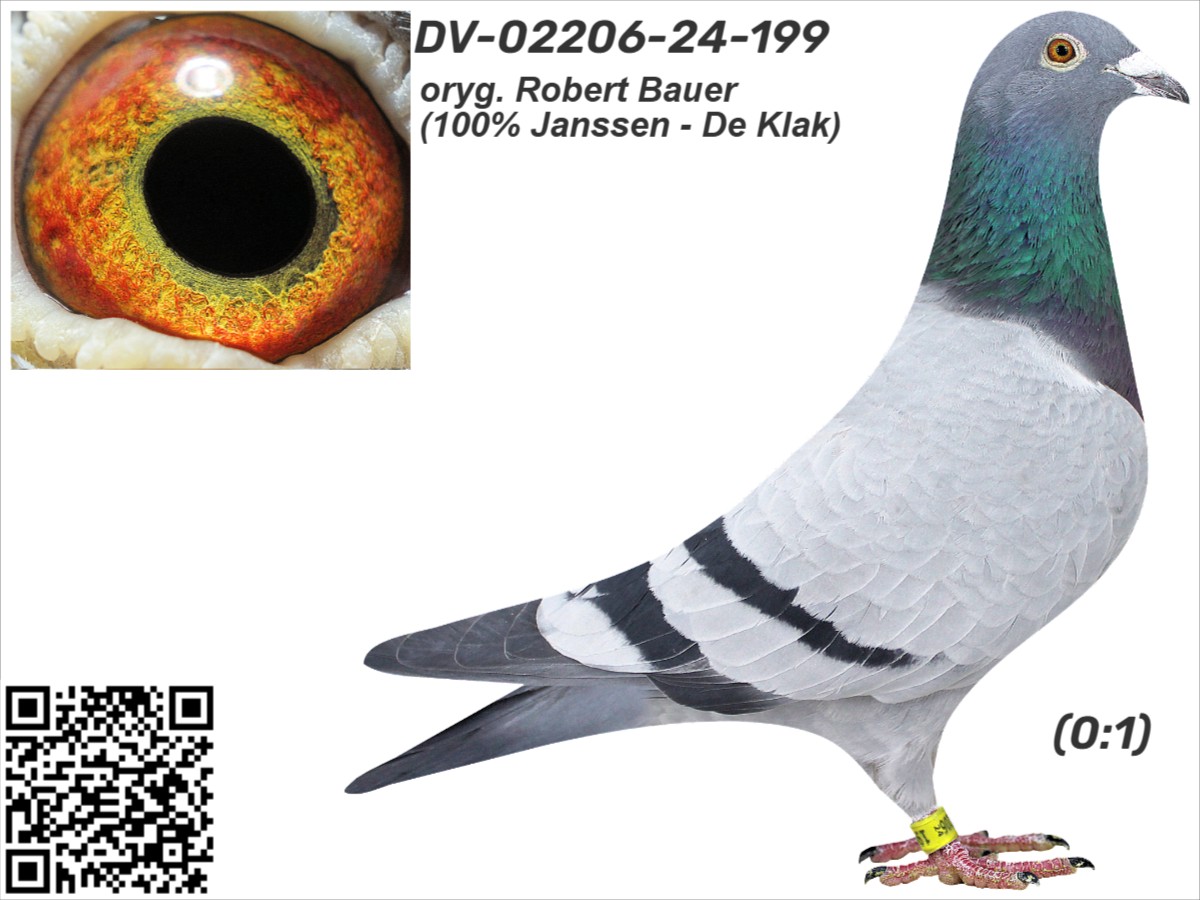 oryg. Robert Bauer (100% Janssen - De Klak) Szczegóły pochodzenia w rodowodzie i załączonych materiałach. Więcej informacji o gołębiu i transporcie pod nr tel.: 505 674 678.