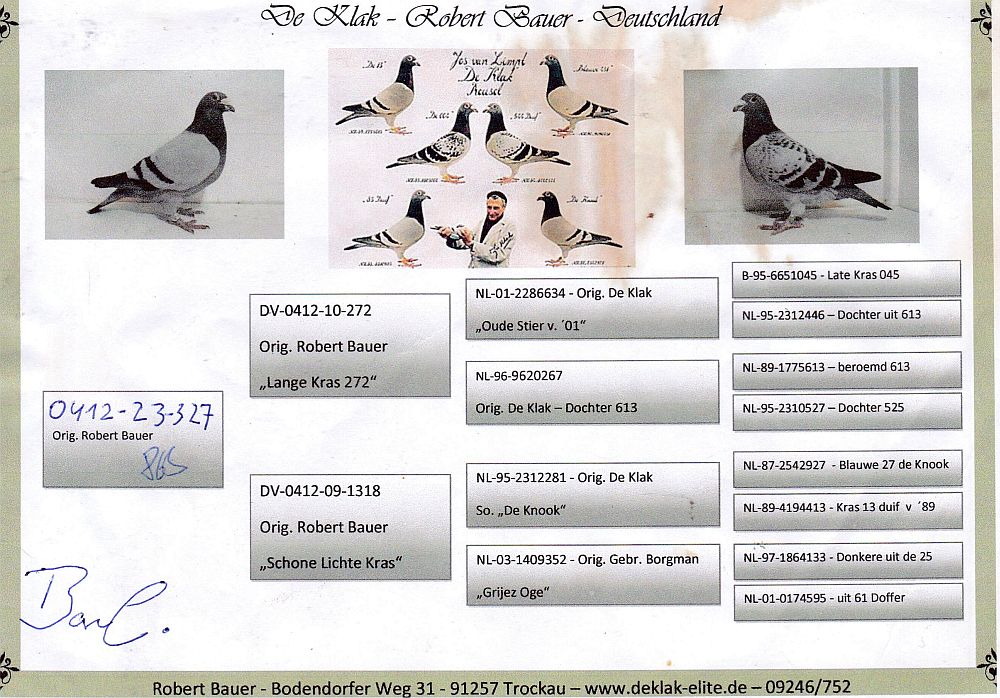 oryg. Robert Bauer (100% Janssen - De Klak) Szczegóły pochodzenia w rodowodzie i załączonych materiałach. Więcej informacji o gołębiu i transporcie pod nr tel.: 505 674 678.