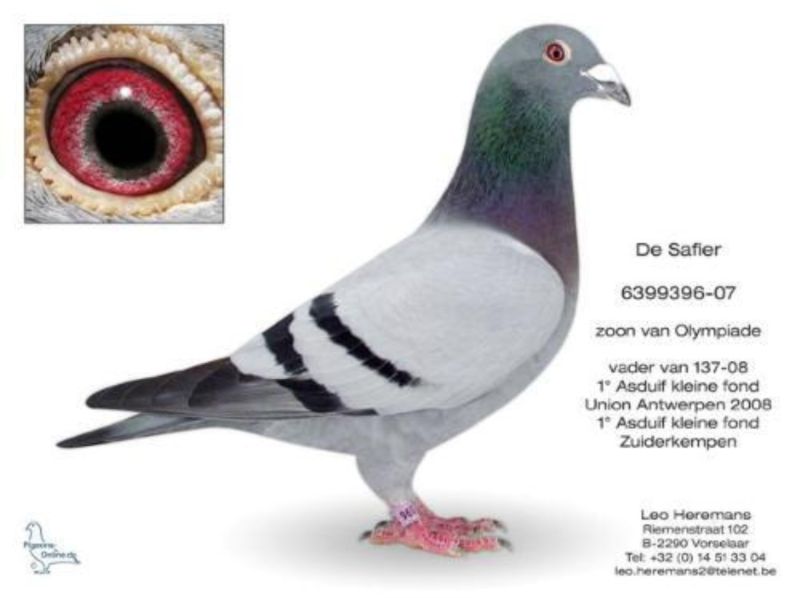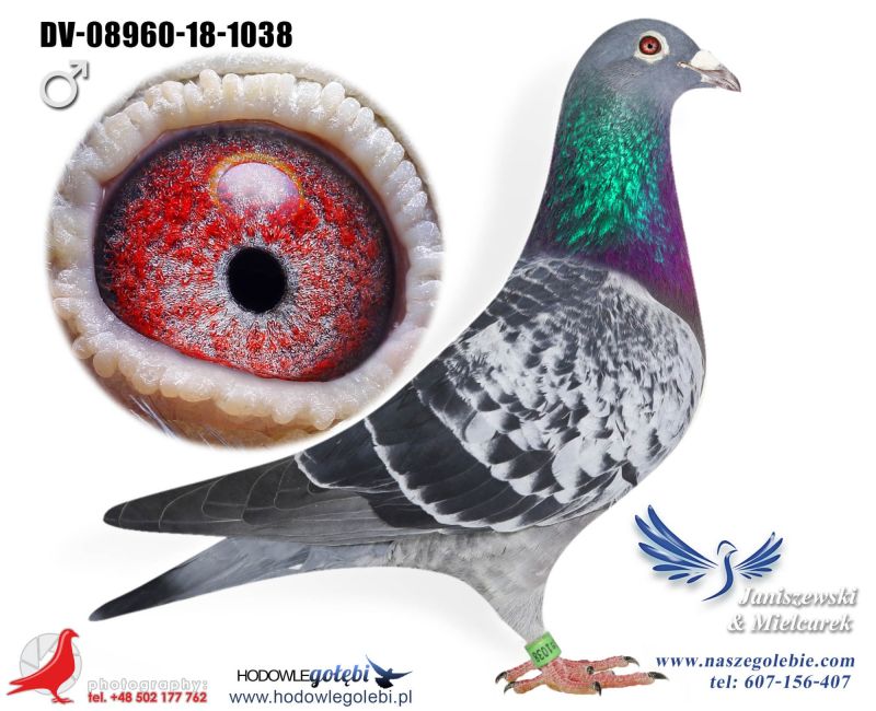 Gołąb z hodowli zmarłego hodowcy Zenona Janiszewskiego. Piękny Samiec, wywodzi się z najlepszych gołębi Leo Heremansa (De Jan, Safier, Nieuwe Olympiade, Di Caprio) oraz gołebi WA de Bruijne - (Olympic Zeus, Zidane, Fina czy Blue Flame). Samczyk brał udział w lotach gołebi młodych w których zdobył 4 konkursy w 5 lotach, najlepsze miejsce to 11 konkurs na Oddział, Jego 100% brat 8448 był 1 na Oddział Jędrzejów hodowca Artur Smorąg. Gołąb szczepiony na paramixowirozę, ospę i salmonellozę! Odbiór gołębi: Najchętniej osobiście (Wrocław) Możliwa wysyłka prywatnym kurierem koszt pokrywa kupujący około 150 zł Szczegóły proponowanych gołębi znajdziecie w rodowodzie oraz pod numerem 607156407 o telefony proszę po godzinie 16ej.