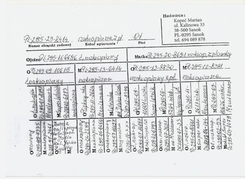 Płeć: samica Hodowca - rasa: oryg. Marian Kopeć Zakończenie: 28.02.2026 godz. 20:10