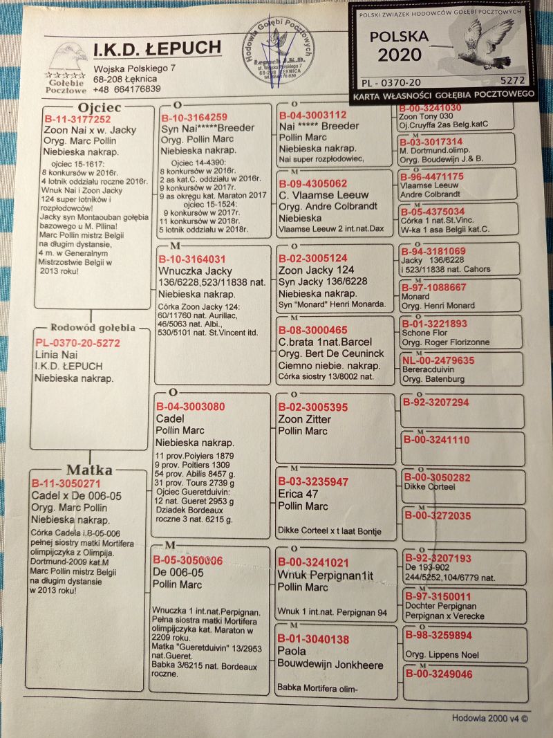 Oryginalny gołąb z hodowli IKD Łepuch. szczegóły pochodzenia w rodowodzie. Więcej informacji pod nr tel.: 602180484 *Odbiór gołębia osobisty lub kurier na własną rękę. Miejscowość Kalisz