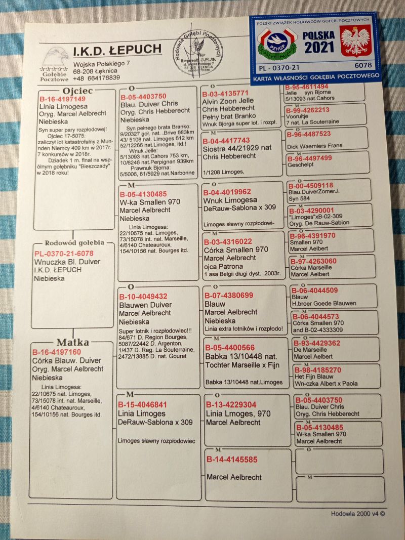 Oryginalny gołąb z hodowli IKD Łepuch. Szczegóły pochodzenia w rodowodzie. Więcej informacji pod nr tel.: 602180484 *Odbiór gołębia osobisty lub kurier na własną rękę. Miejscowość Kalisz