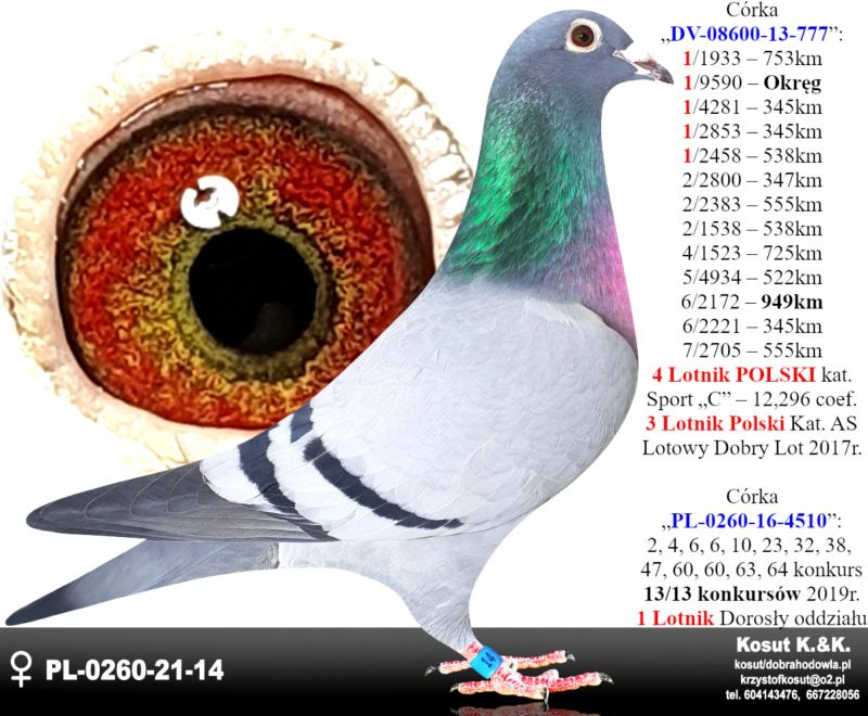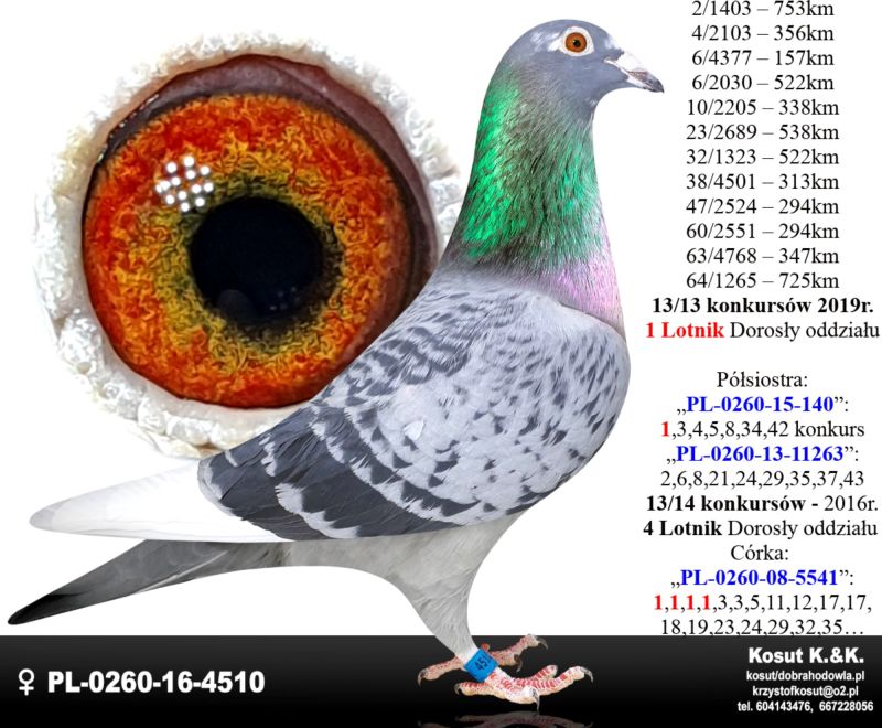 PL-0256-25-4574 – Inbred Syn x Córka „777” – 1,1,1,1,1 konkurs 4 Lotnik Polski oryg. Kosut K. & K. 85x1 konkurs Oddział