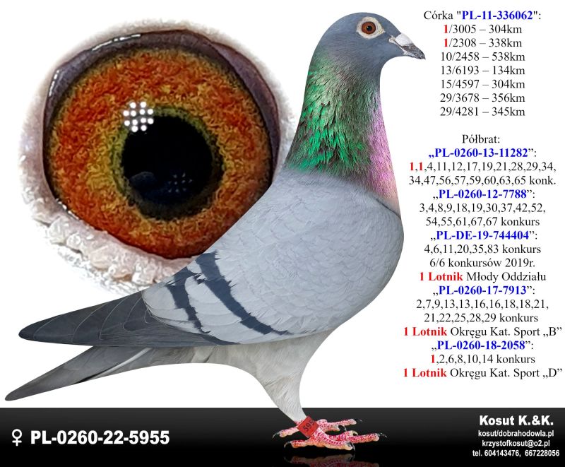 Oryginalny gołąb z hodowli Krzysztof i Kamil Kosut. Szczegóły pochodzenia w rodowodzie. Więcej informacji na stronie www.facebook.com/kosut.dobrahodowla oraz pod nr tel.: 667 228 056. Dostawa gołębi będzie realizowana po zakończeniu aukcji kurierem 165zł lub odbiór osobisty. Możliwy jest także odbiór osobisty. *Płeć prawdopodobnie samiec*