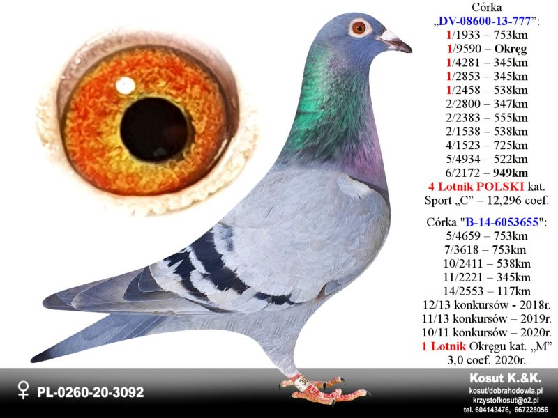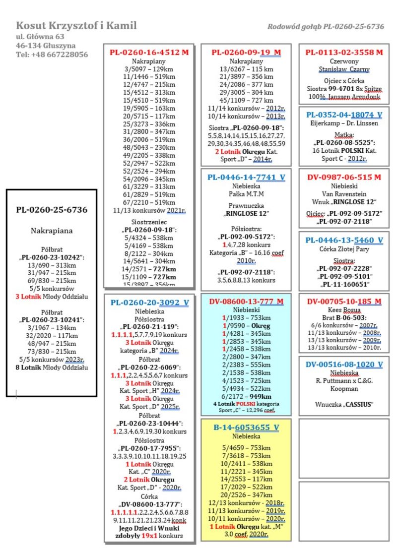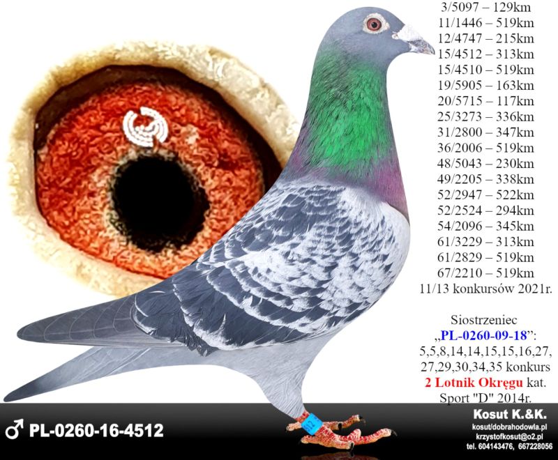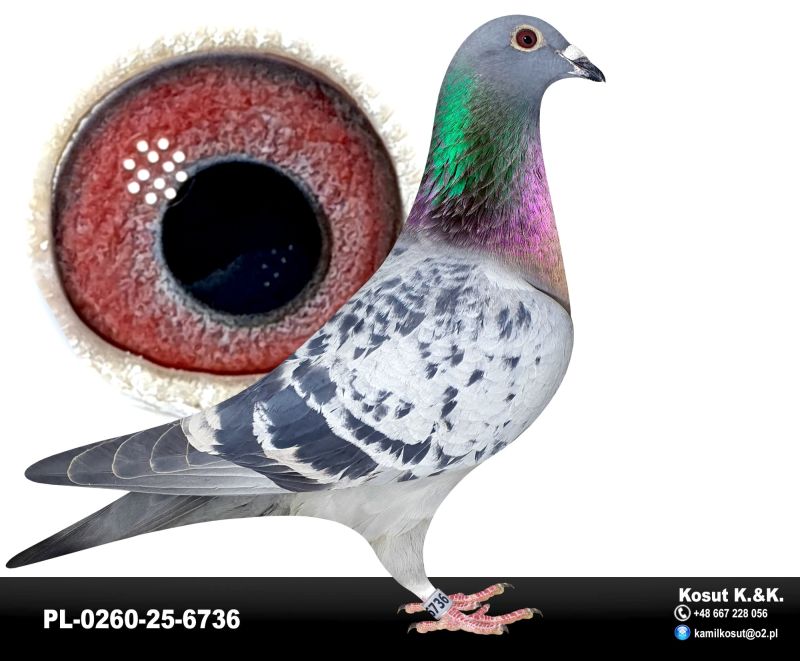 Oryginalny gołąb z hodowli Krzysztof i Kamil Kosut. Szczegóły pochodzenia w rodowodzie. Więcej informacji na stronie www.facebook.com/kosut.dobrahodowla oraz pod nr tel.: 667 228 056. Dostawa gołębi będzie realizowana po zakończeniu aukcji kurierem 165zł lub odbiór osobisty. Możliwy jest także odbiór osobisty.