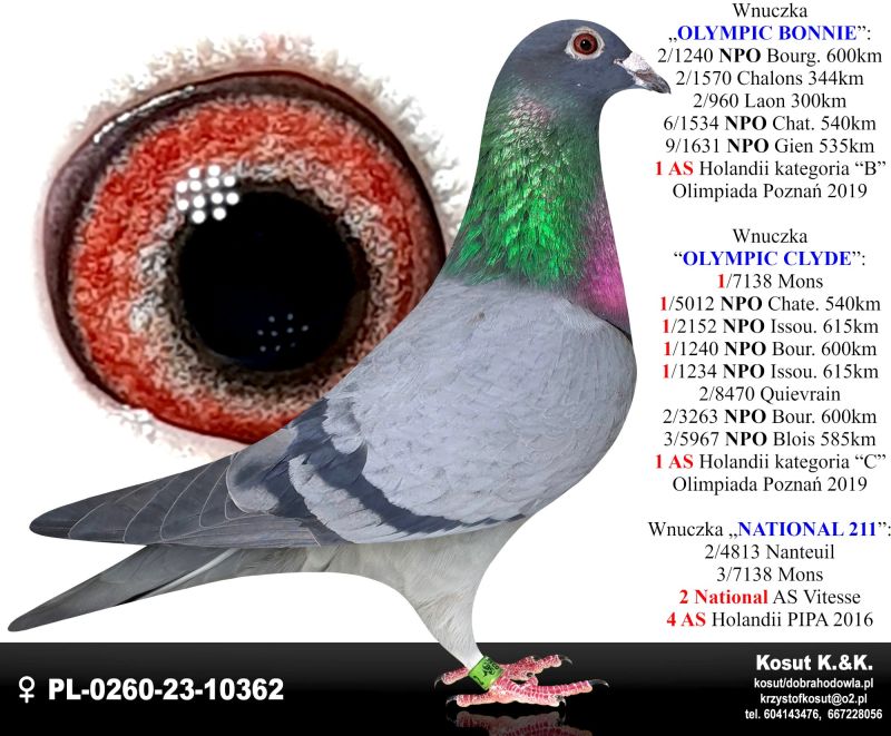 Oryginalny gołąb z hodowli Krzysztof i Kamil Kosut. Szczegóły pochodzenia w rodowodzie. Więcej informacji na stronie www.facebook.com/kosut.dobrahodowla oraz pod nr tel.: 667 228 056. Dostawa gołębi będzie realizowana po zakończeniu aukcji kurierem 165zł lub odbiór osobisty. Możliwy jest także odbiór osobisty.