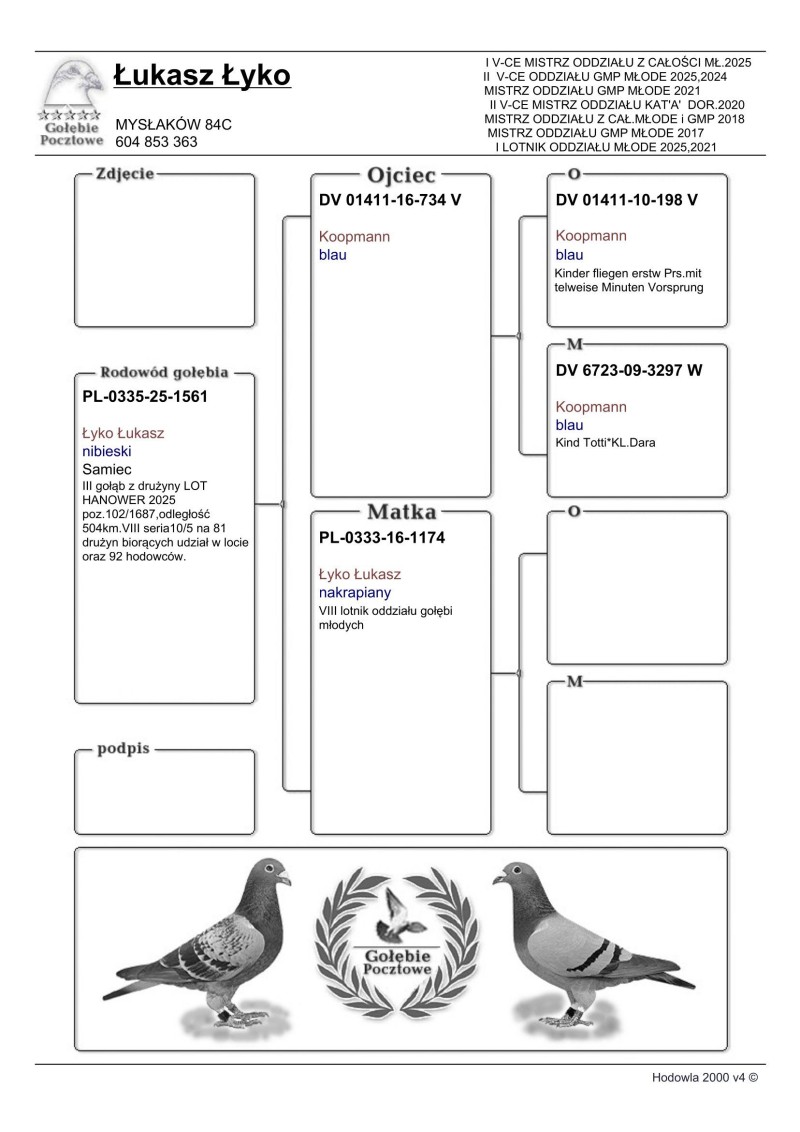 PL-0335-25-1561 - VIII drużyna LOT HANOWER GOŁĘBI MŁODYCH 2025 504 km