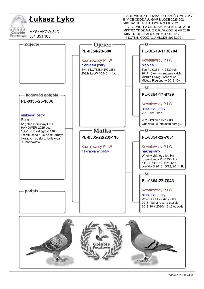 PL-0335-25-1606 - VIII drużyna LOT HANOWER GOŁĘBI MŁODYCH 2025 504 km