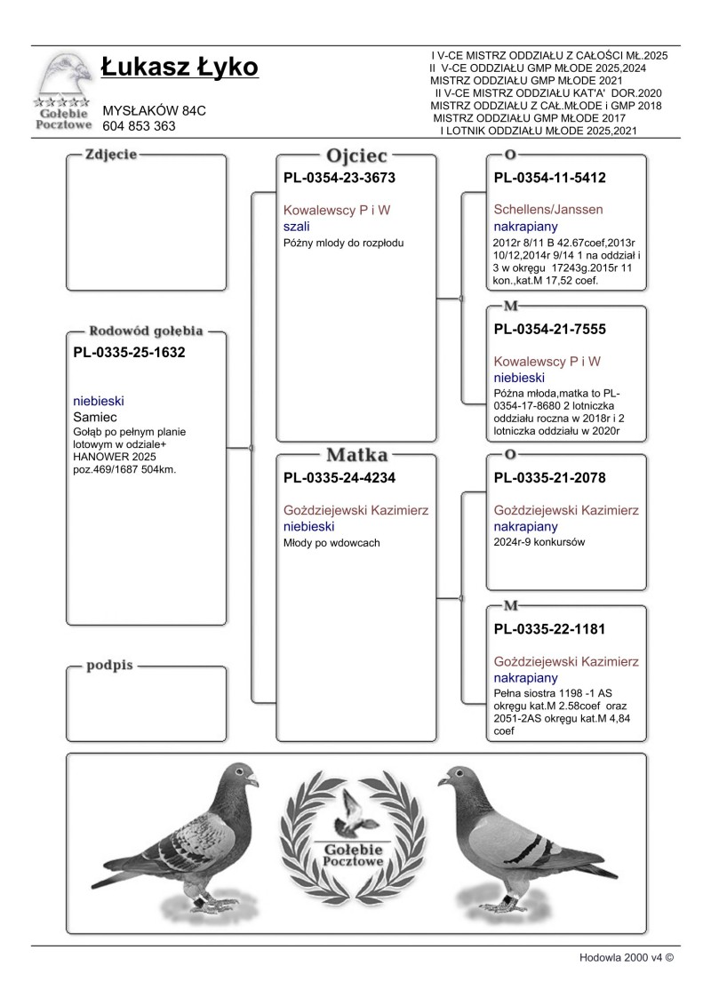 Witam z racji tego, że na gołębie dorosłe lotuję tylko samiczkami mam do odstąpienia 7 przelotowanych samczyków po wymagającym sezonie w oddziale i dodatkowym locie Hanower 2025. Gołębie przygotowane do lęgow, za młódka były szczepione 2 razy (mycosalmovir i columba 2) + ospa. Wysyłka po wpłacie na konto, koszty transportu pokrywa kupujący, więcej info pod 604853363. *Loty w których brały udział:24.08 Królów 130 km 1584m/min, Forst 31.08 160km 1503m/min, Luckau Ost 07.09 220 km 1157m/min, Jessen 14.09 269 km 1171m/min, Dessau 21.09 1172m/min, Hanower 28.09 504 km 1125m/min.