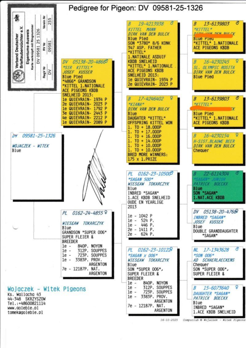 Płeć: samiec Hodowca - rasa: Wojaczek Witek Pigeons Zakończenie: 2.03.2026 godz. 20:18