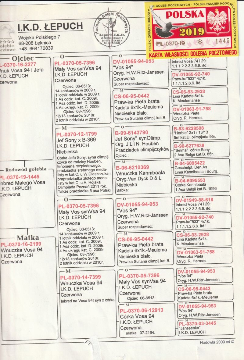 STACJA HODOWLANA FRANKIEWICZ PODGÓRSKI WYSTAWIA NA LICYTACJE PAKIET 10 MŁODYCH + 2 GRATIS Z DRUGIEGO LĘGU Z GOŁĘBNIKA ROZPŁODOWEGO ODBIÓR GOŁEBI W DRUGIEJ POŁOWIE MAJA . HODOWCA SAM WYBIERA MŁODE . POD SPODEM PRZYKŁADOWE RODOWODY RODZICÓW DLA ZAINTERESOWANYCH MOGĘ PODESŁAC NA PRIV JAK SA SPAROWANE GOŁEBIE.
