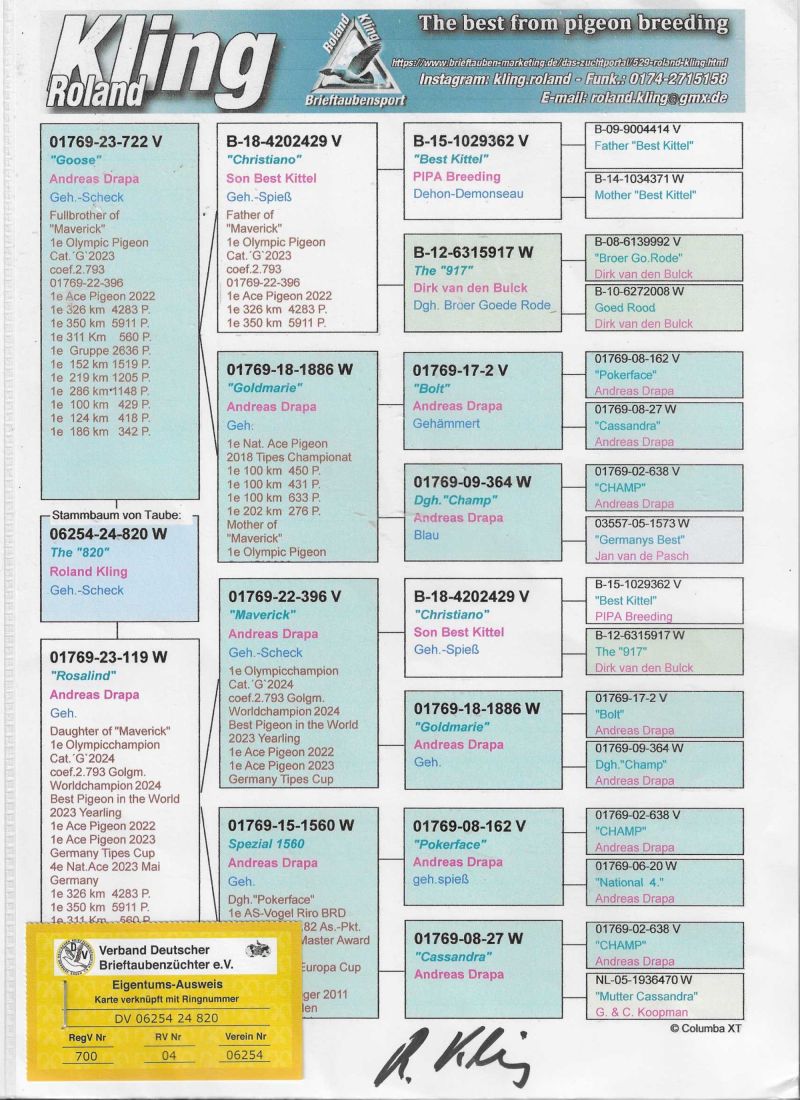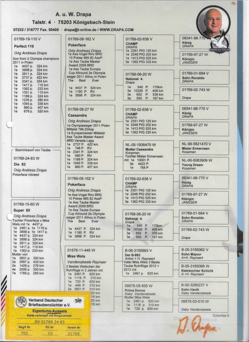 POSIADAMY W HODOWLI GOŁEBIE OD ANDREAS DRAPA, DOMINIK PALARSKI, DE MERVE,PASZEK,HOOUMANS, BOGDAN MICHALAK, SEBASTIAN, IKD ŁPEUCH