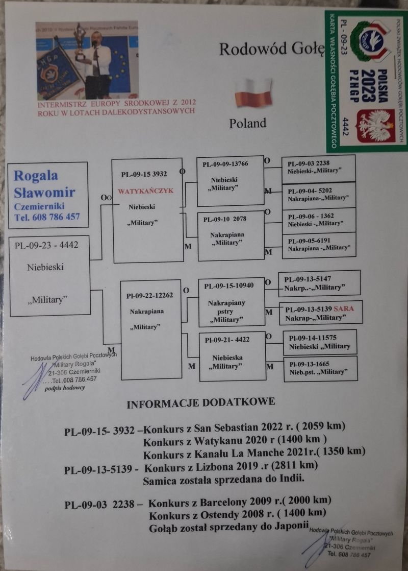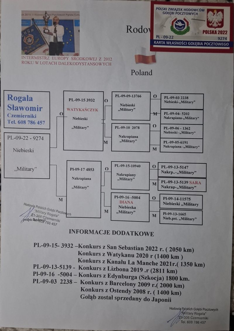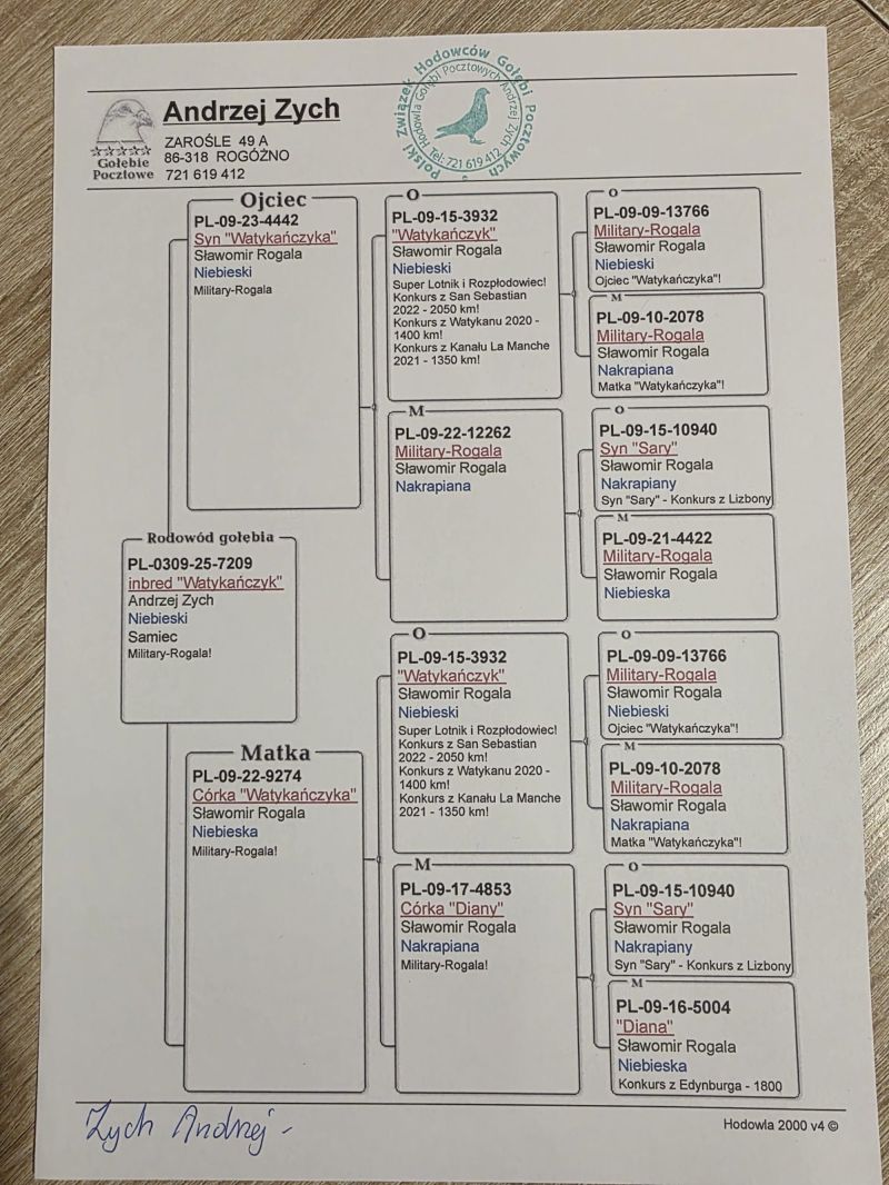 Oryginalny gołąb z hodowli Andrzeja Zycha. Szczegóły pochodzenia zamieszczone w rodowodzie. Więcej informacji pod numerem telefonu: 721 619 412