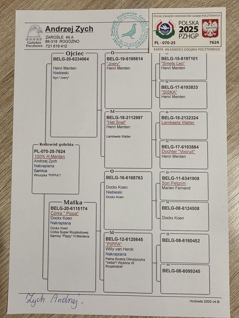 Oryginalny gołąb z hodowli Andrzeja Zycha. Szczegóły pochodzenia zamieszczone w rodowodzie. Więcej informacji pod numerem telefonu: 721 619 412