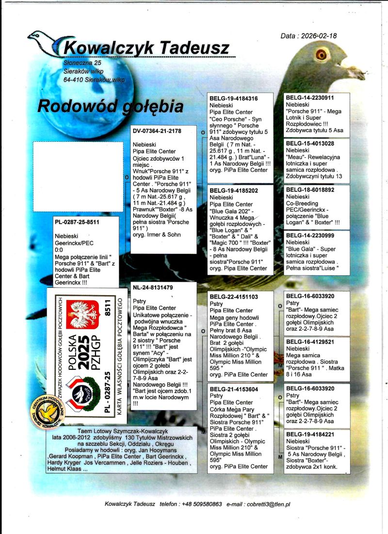 PL-0287-25-8511 Mega połączenie gołębi z hodowli Bart Geerinckx & PiPa Elite Center