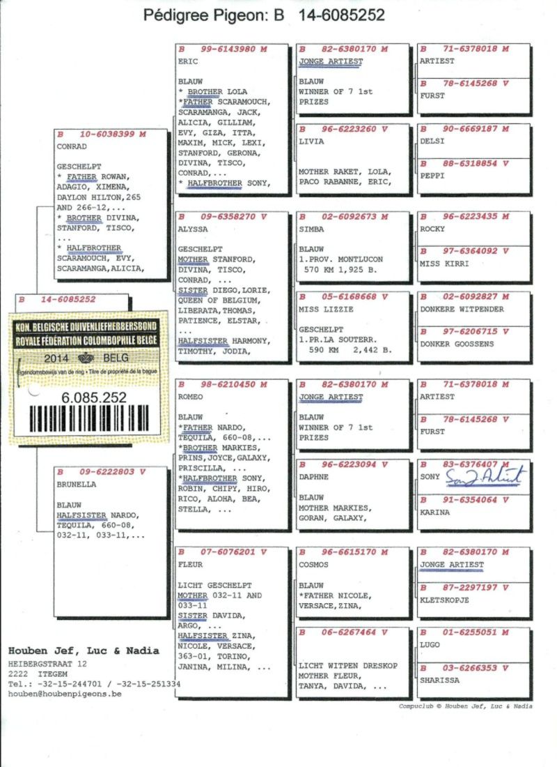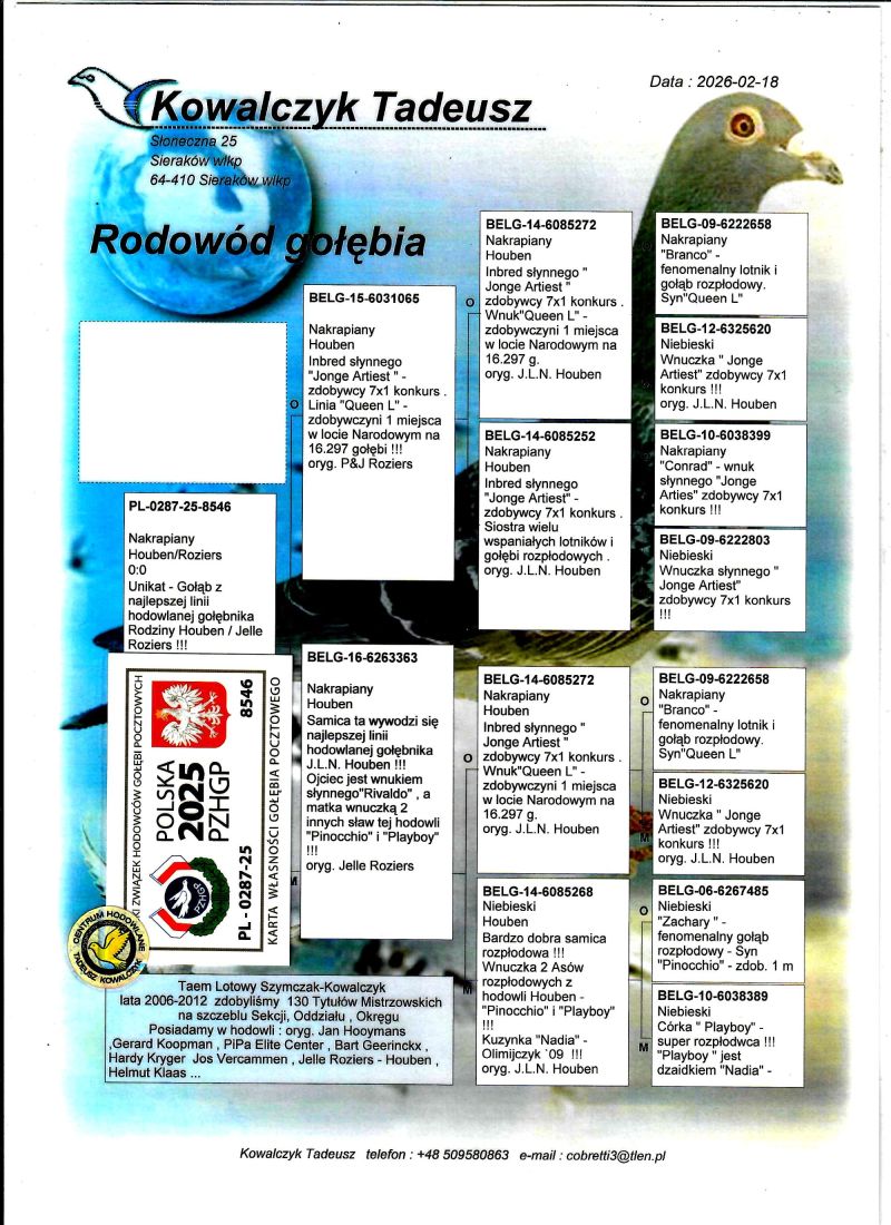 PL-0287-25-8546 Unikat - Potomek 3 oryginalnych gołębi z hodowli Rodziny Houben