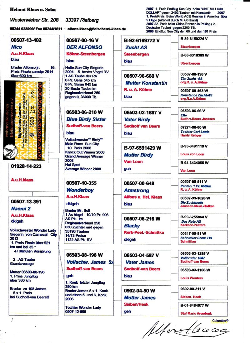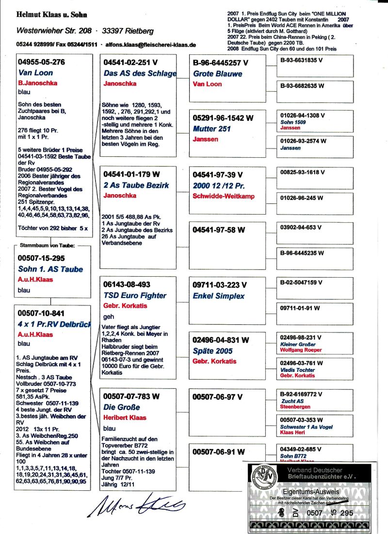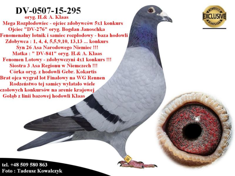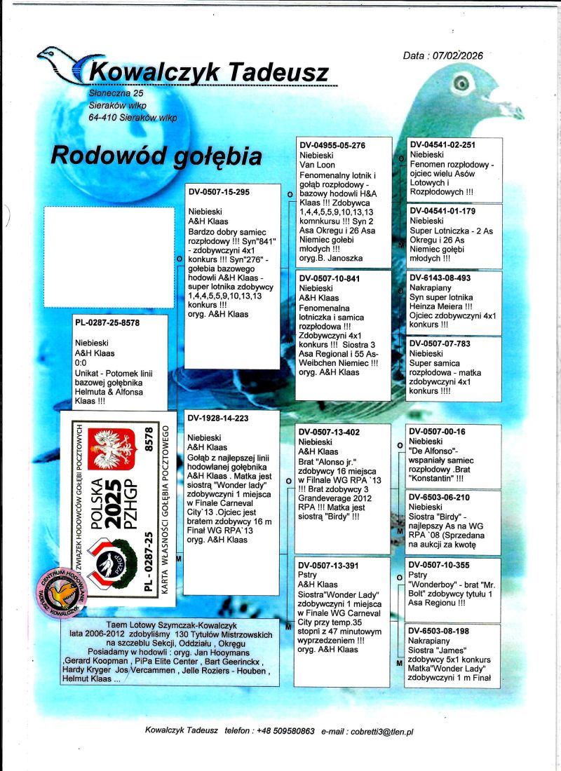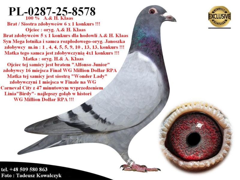 PL-0287-25-8578 Unikat - Potomek bazowych gołębi z hodowli A.& H. Klaas
