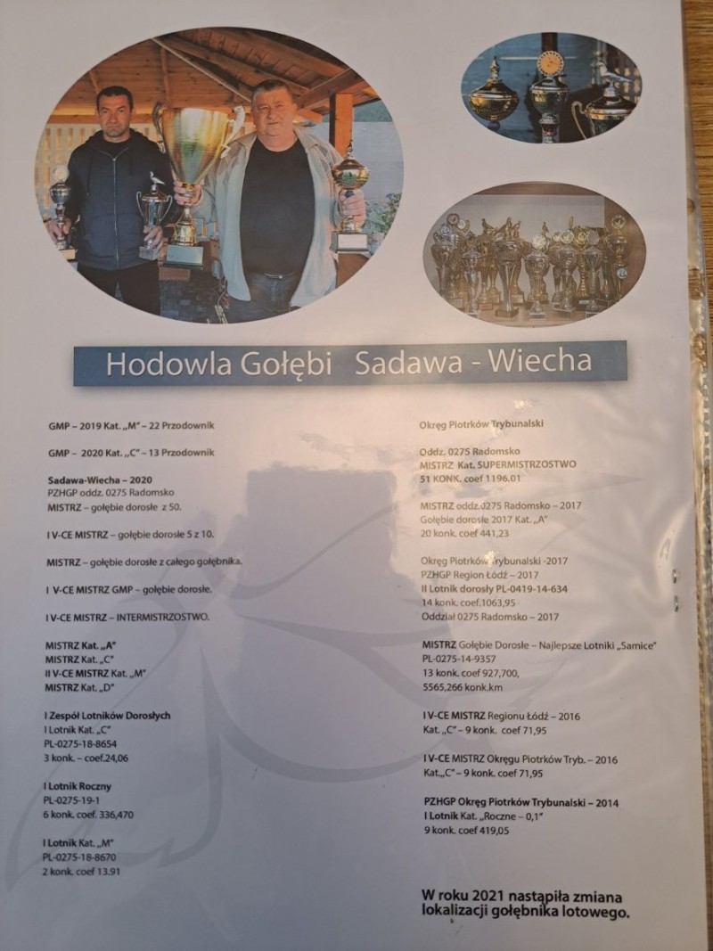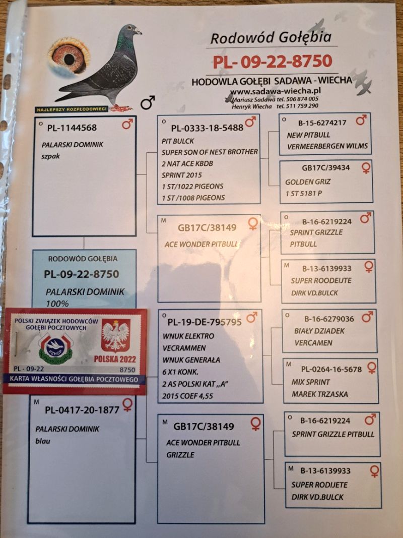 Oryginalny gołąb z hodowli Panów Sadawy oraz Wiechy. Wywodzi się on z oryginalnych gołębi od Pana Dominika Palarskiego. Jest to inbred na jego super samicę rozpłodową 149. Wszelkie informacje w rodowodzie oraz pod numerem telefonu. Gołąb zdrowy, płodny. Sprzedaję z powodu ograniczenia rozpłodu. Transport do uzgodnienia. Możliwy dowóz na terenie Województwa Wielkopolskiego.
