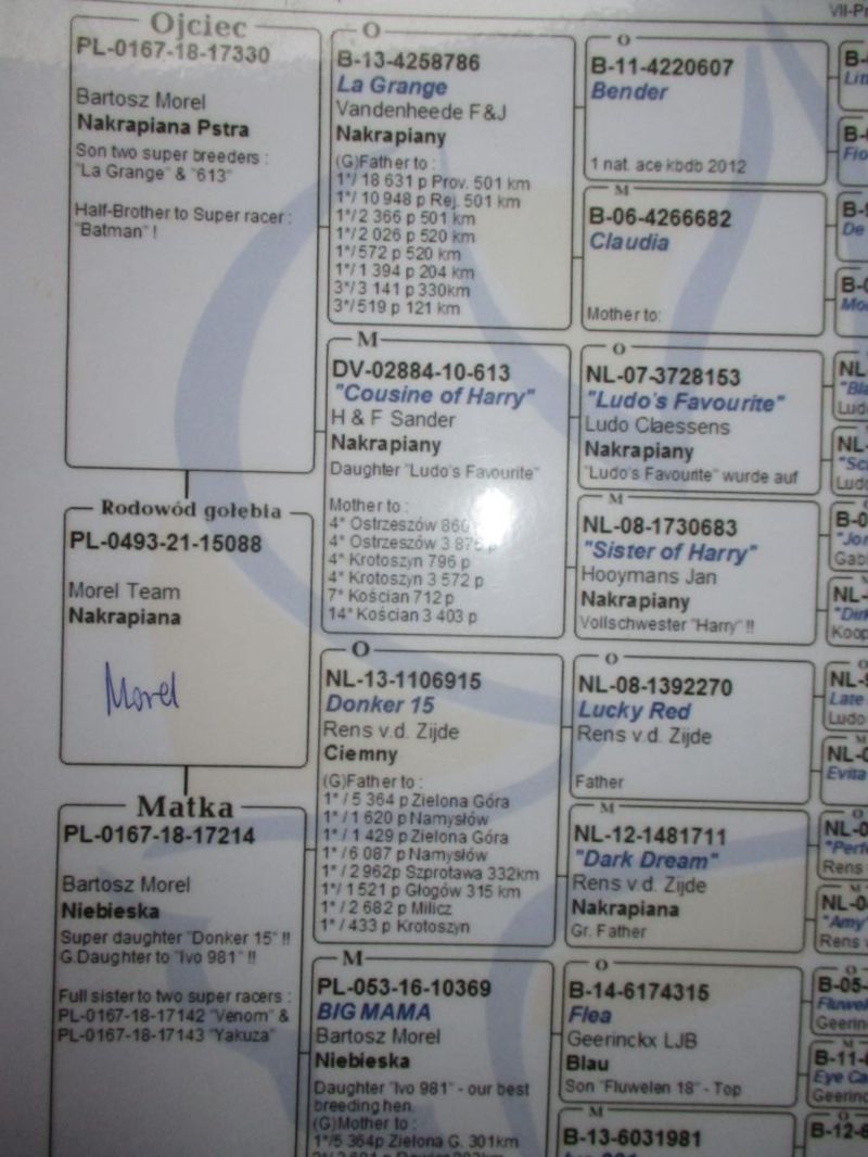 Orginalny golab z hodowli Morel Team.likwidacja hodowli.wysylka po wplacie pieniaszkow na konto za wylicytowanego golabka.koszt transportu 150 zl