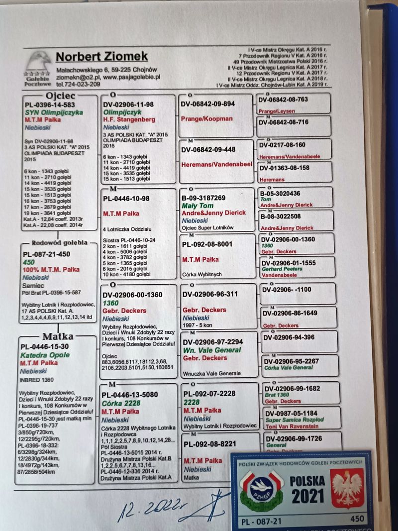 Oryginalny gołab z hodowli Norbert Ziomek. Szczegóły pochodzenia w rodowodzie. Więcej informacji pod nr tel.: 730045046 prosze dzwonic po godz. 15