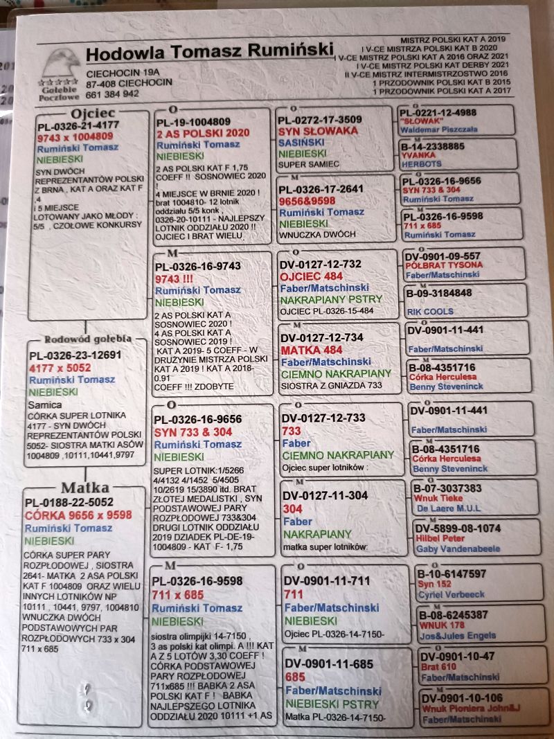 Oryginalny gołab z hodowli Tomasza Rumińskiego. Szczegóły pochodzenia w rodowodzie. Więcej informacji pod nr tel.: 730045046 prosze dzwonic po godz. 15