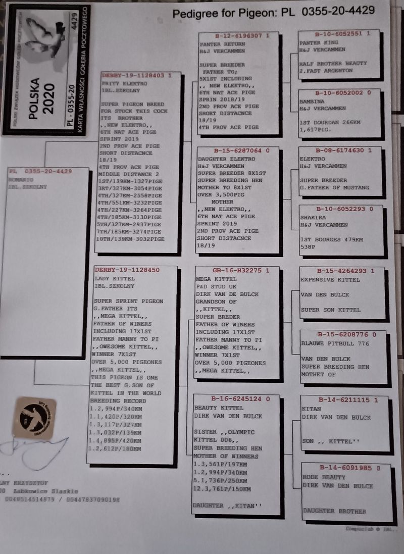 Oryginalny gołab z hodowli Krzysztofa Szkolnego. Szczegóły pochodzenia w rodowodzie. Więcej informacji pod nr tel.: 730045046 prosze dzwonic po godz. 15