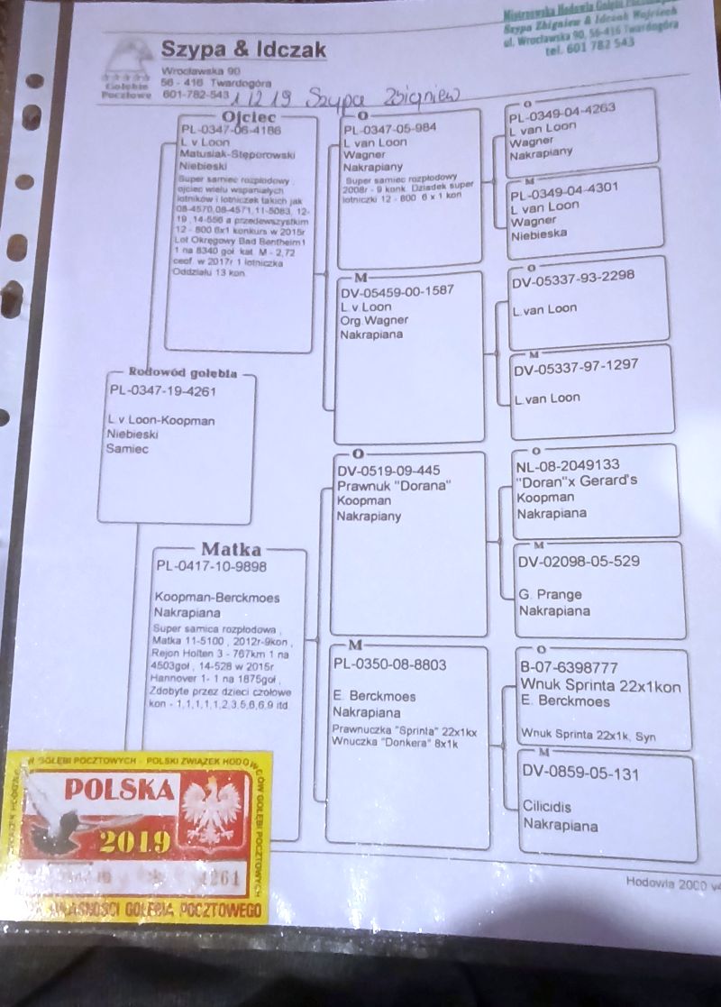 Oryginalny gołab z hodowli Szypa & Idczak. Szczegóły pochodzenia w rodowodzie. Gołab w pełni zdrowia, płodny. Więcej informacji pod nr tel.: 603 845 650 **odbiór osobisty lub wysyłka kurierem na koszt kupującego