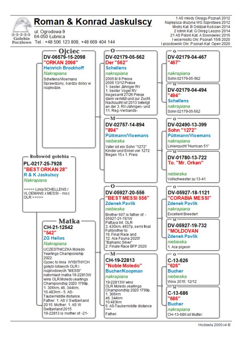 ***** UWAGA ***** Możliwy odbiór osobisty lub dostawa realizowana przez kuriera w cenie od 100 do 160 zł. (w zależności od kuriera) !!!!! <<<<< NA POCZATKU GRUDNIA 1 LOTKA DO ZRZUCENIA >>>>> Oryginalny gołąb z hodowli Romana & Konrada Jaskulskich. Szczegóły pochodzenia w rodowodzie. Gołąb gotowy do sezonu lęgowego, zaszczepiony Columba PHA i Columba RP oraz przeciwko salmonellozie (Salmo PT). Więcej informacji pod nr tel.: 506 123 808. Wpłata za gołębia na konto po zakończeniu aukcji. Możliwy odbiór osobisty lub dostawa realizowana przez kuriera w cenie od 100 do 160 zł. (w zależności od kuriera) *** ZAPRASZAMY RÓWNIEŻ NA INNE NASZE AUKCJE ***