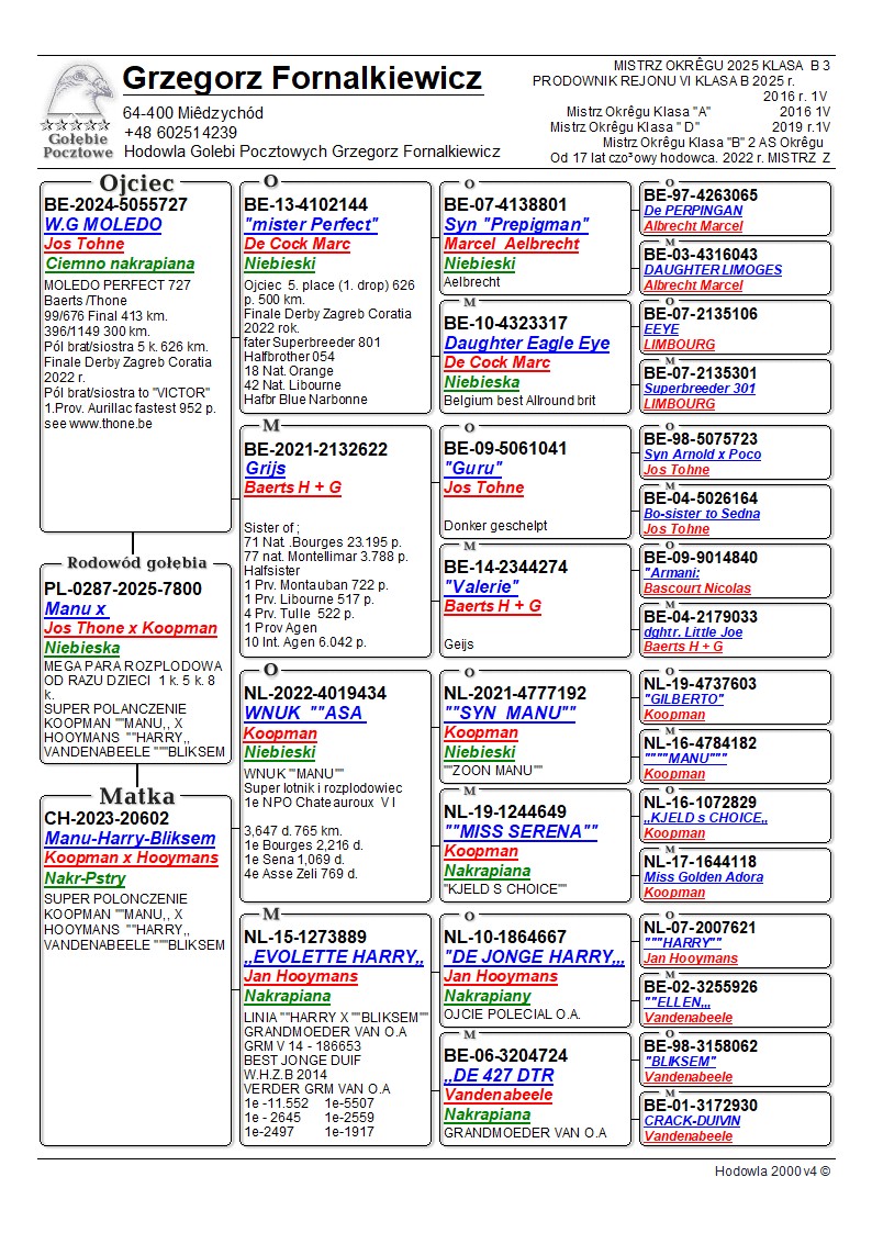 Płeć: samica Hodowca - rasa: G. Fornalkiewicz Zakończenie: 13.03.2026 godz. 20:06