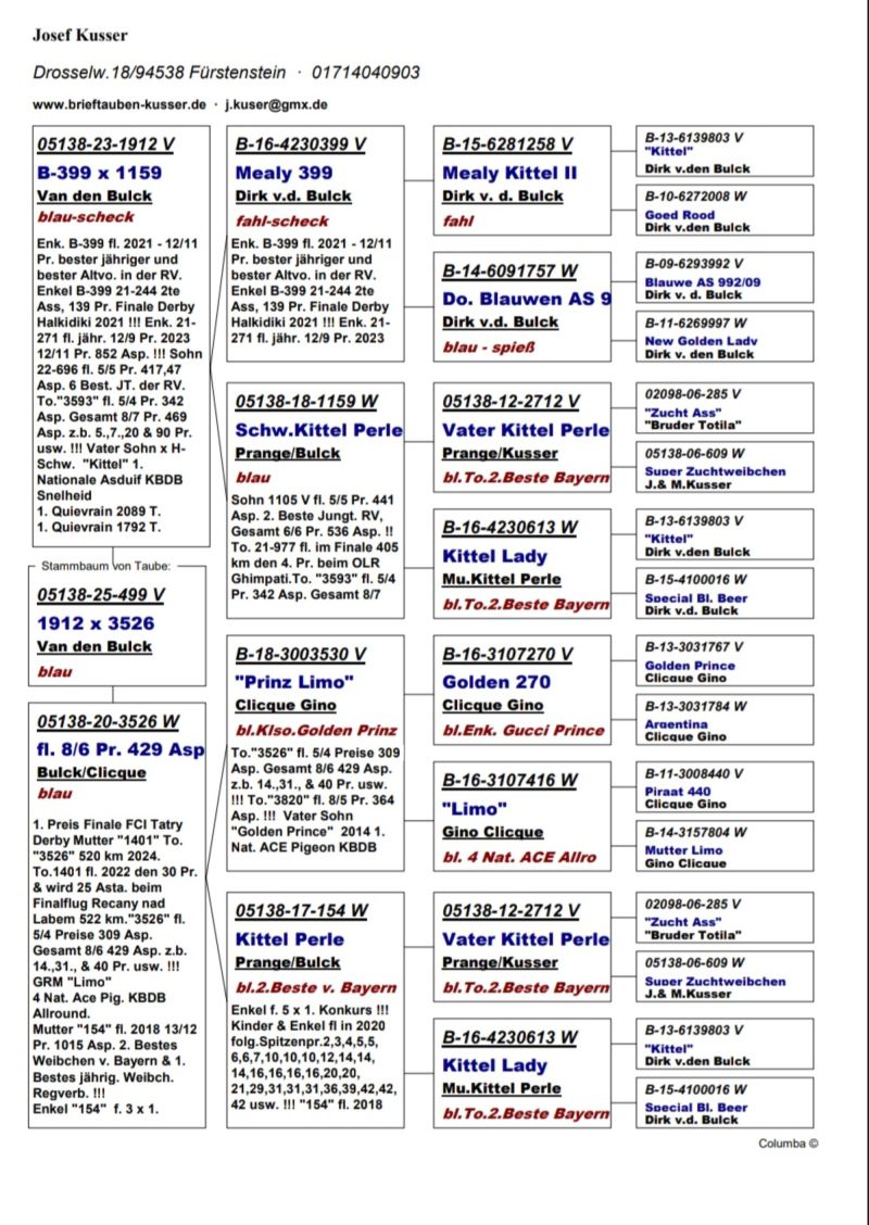 DV-05138-25-499 Dirk v.d.Bulck/Gino Clique - Josef Kusser 4 miejsce w Niemczech gołębi młodych 2025!