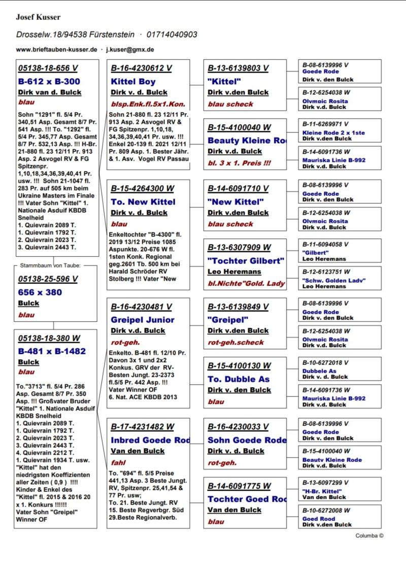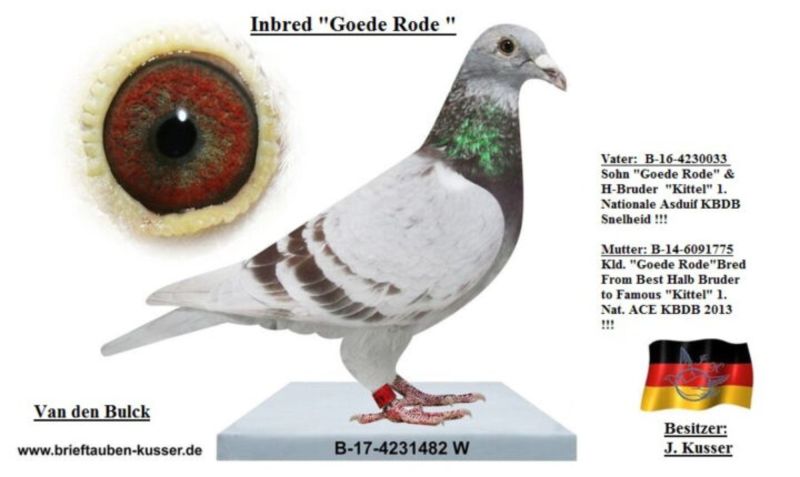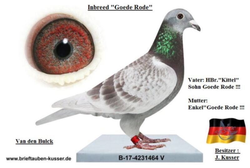 Oryginalny gołąb z hodowli kolegi Josef Kusser, najprawdopodobniej samczyk. Szczegóły pochodzenia w rodowodzie. Więcej informacji pod nr tel.: Josef Kusser +491714040903 Adrian +48692793463