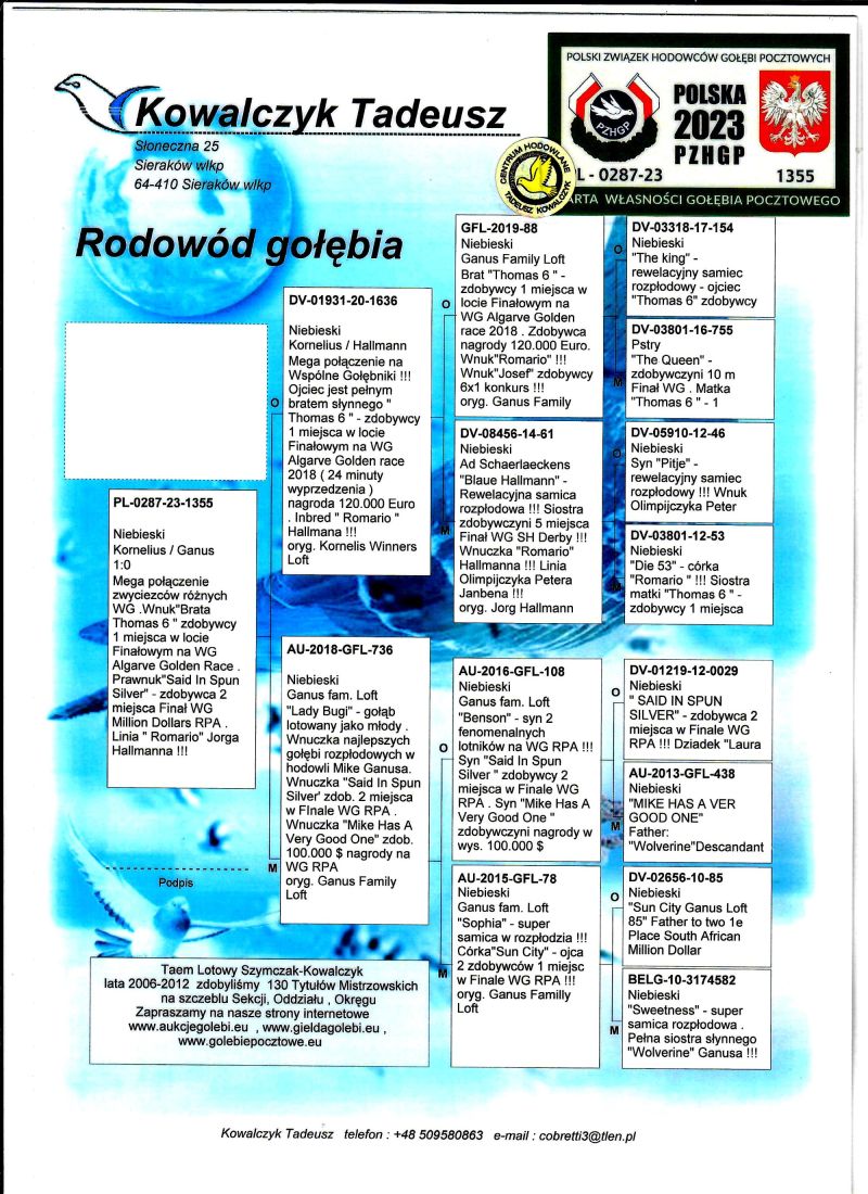 PL-0287-25-8572 Rewelacyjne najlepszych gołebi z hodowli Kornelius & Mike Ganus
